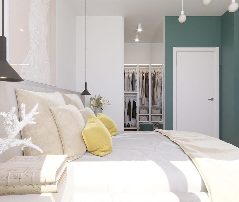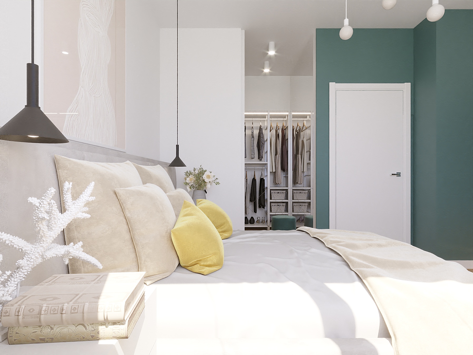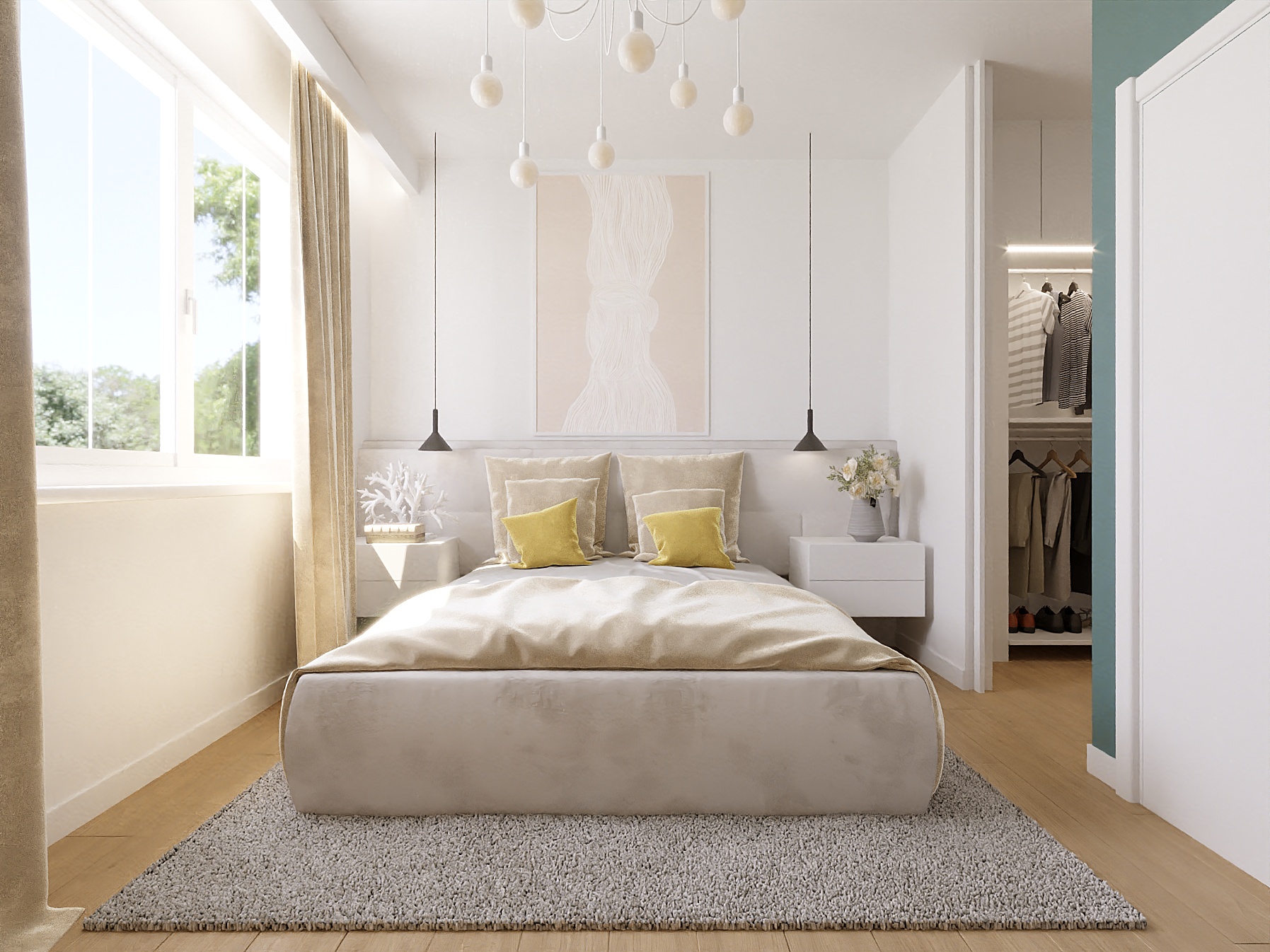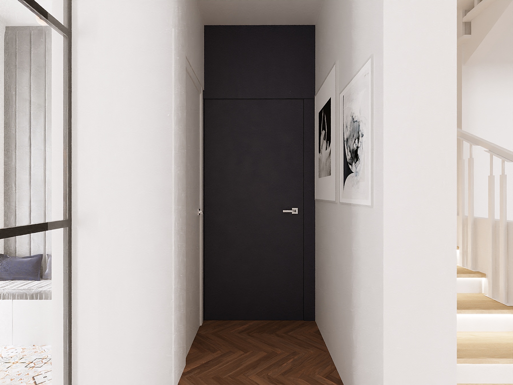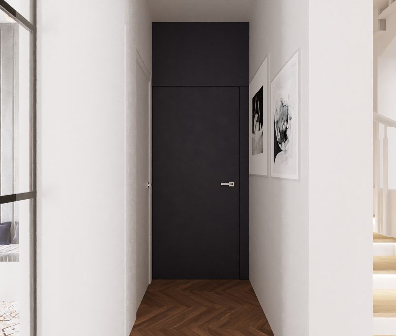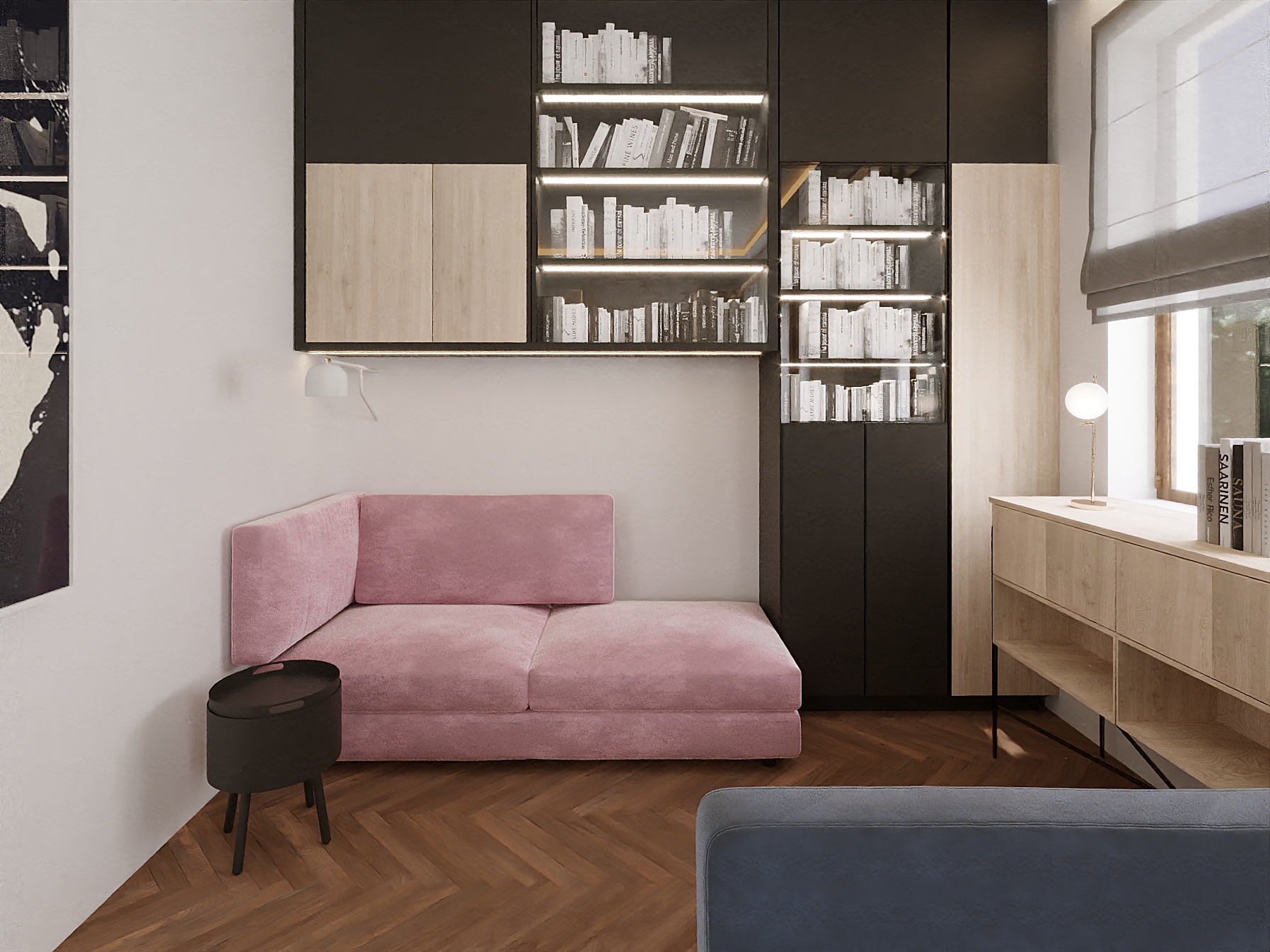 Projekt domu jednorodzinnego w Klaudynie o powierzchni 120 mkw. Klienci zgłosili się do nas w momencie zakupu domu w stanie deweloperskim. Znaliśmy ich gust ponieważ wcześniej projektowaliśmy dla nich mieszkanie. Klienci doskonale wiedzieli jakie mają oczekiwania. Kilka z nich to: maksymalnie duży salon do spędzania wspólnego czasu na parterze, łazienka na dole koniecznie z dodatkiem koloru granatowego, w kuchni złoty okap, złote uchwyty oraz duża lodówka typu sbs. Na piętrze garderoba została włączona do głównej sypialni a w łazience na górze dwie umywalki, duża wanna oraz schowek na pralkę i suszarkę.