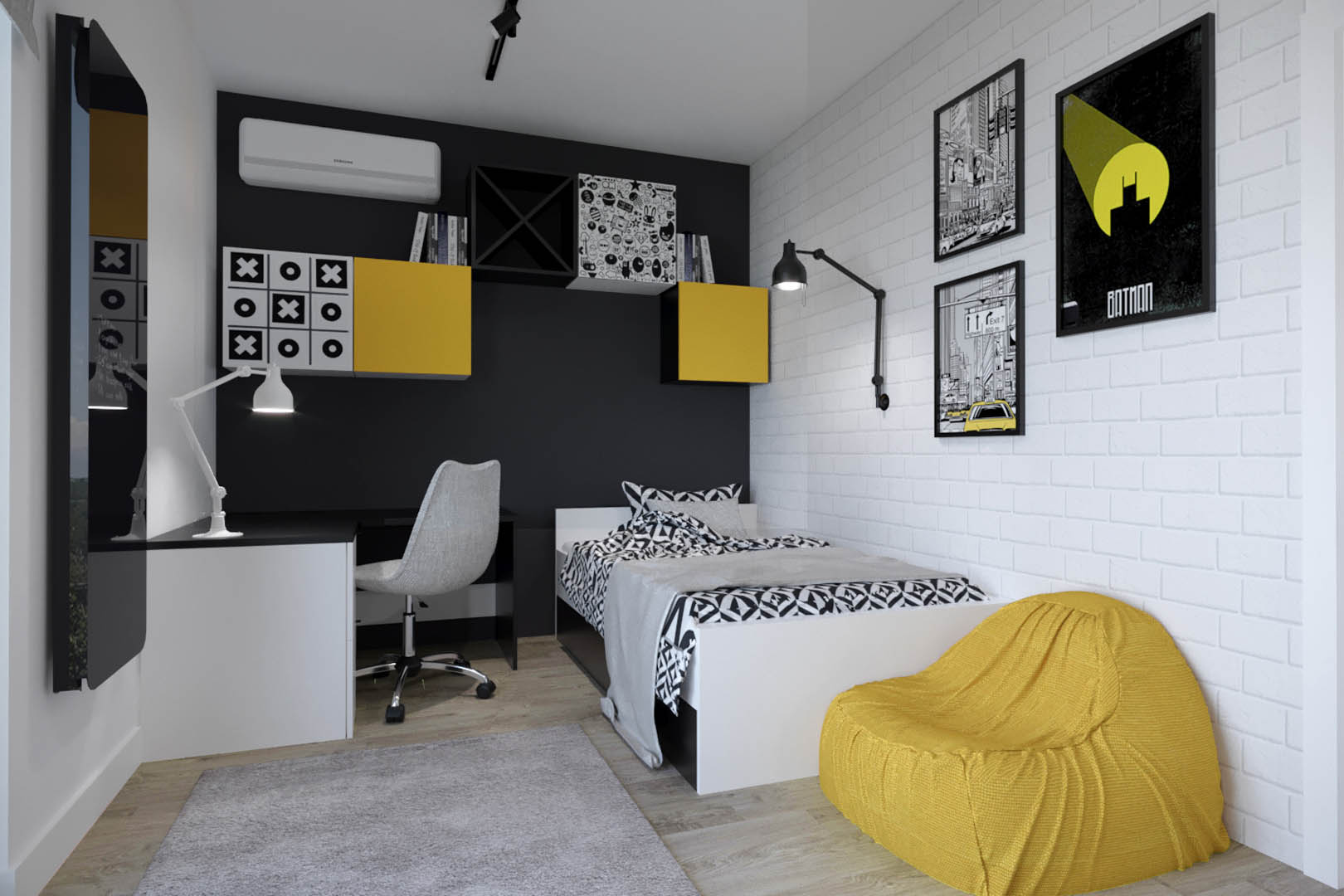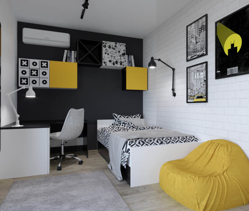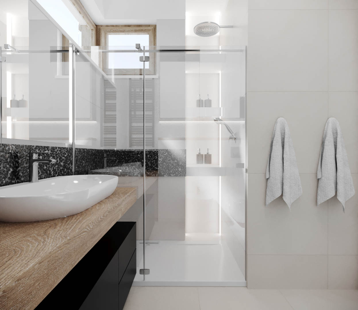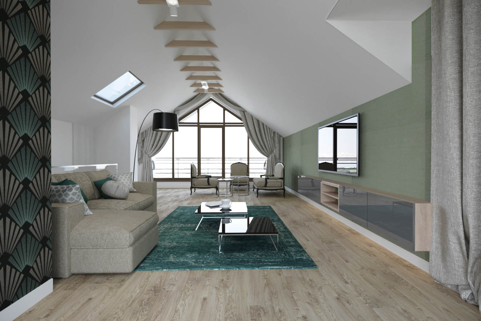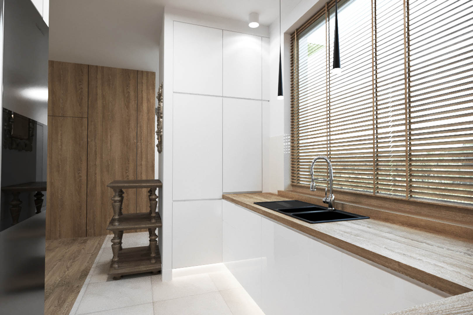 Projekt tego domu powstał na etapie budowy. Właścicielka poprosiła nas o zmianę układów ścianek kiedy dom był jeszcze w stanie surowym. Zaprojektowaliśmy wygodny dom dla Właścicielki oraz jej dwóch dorastających synów oraz dla psów, które były ważnymi członkami tej rodziny. Układ tego domu oraz materiały zostały dobrane pod funkcjonowanie w domu razem ze zwierzętami. Na podłodze postawiliśmy na klasyczne drewno, jedna z łazienek została również zaprojektowana pod psy. W domu oprócz standardowych pomieszczeń takich jak: salon, łazienki, sypialnie został również zaprojektowany na wysokim poddaszu pokój rozrywki z telewizorem oraz małym aneksem kuchennym.