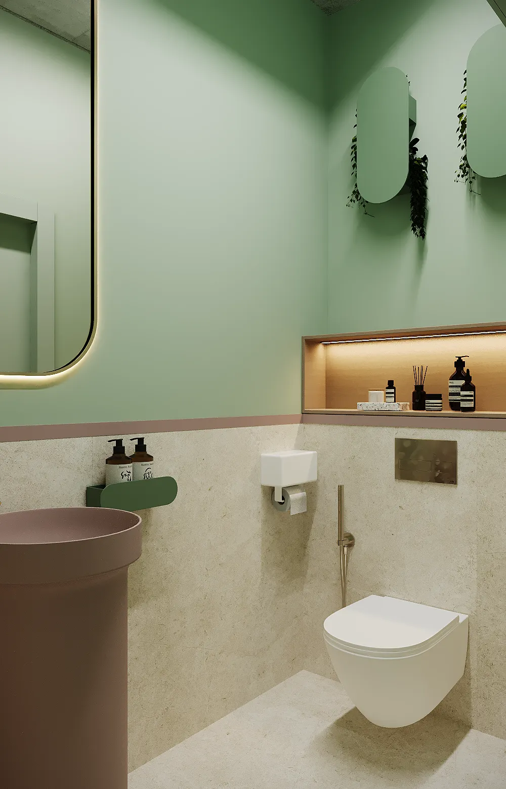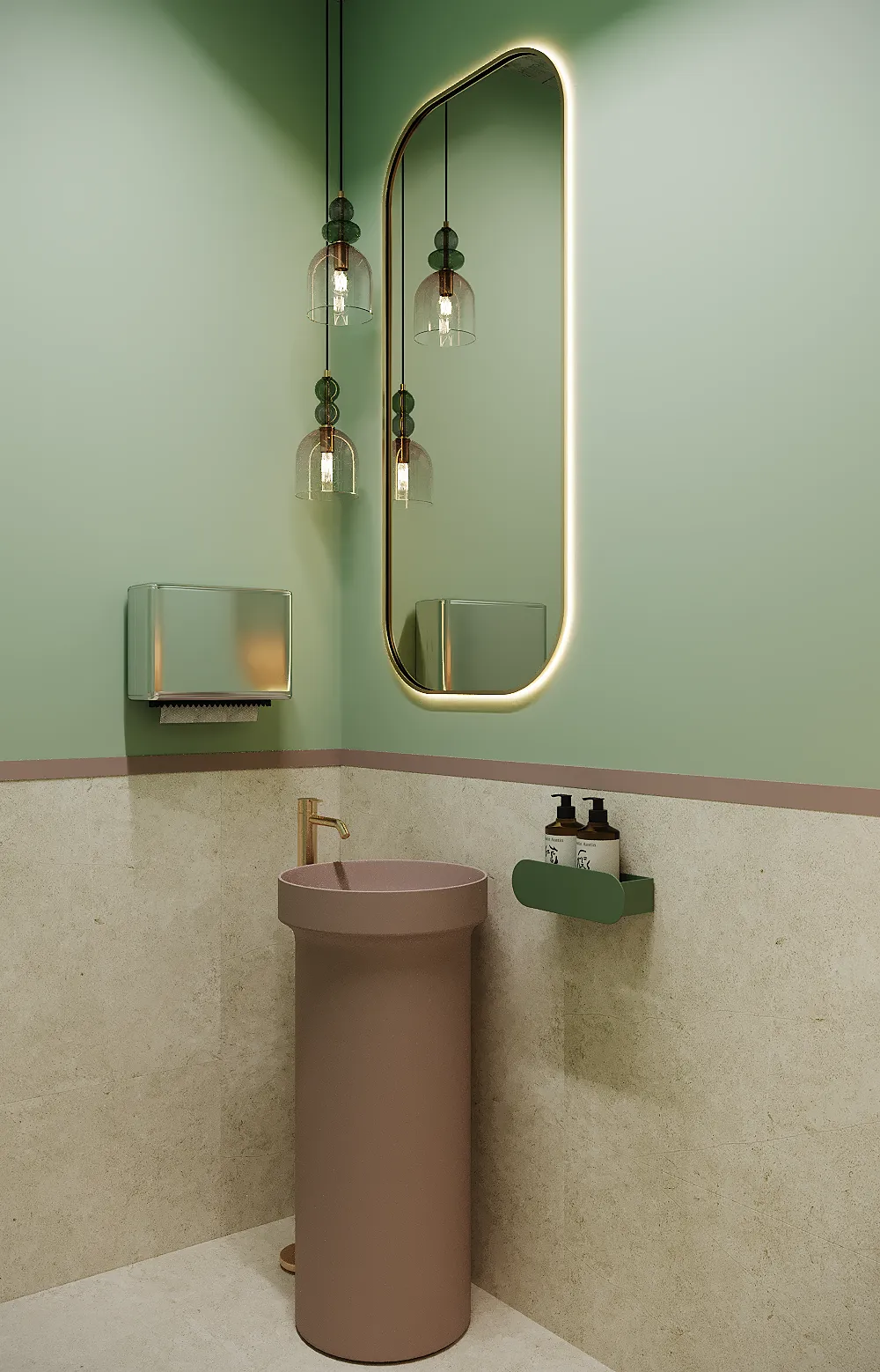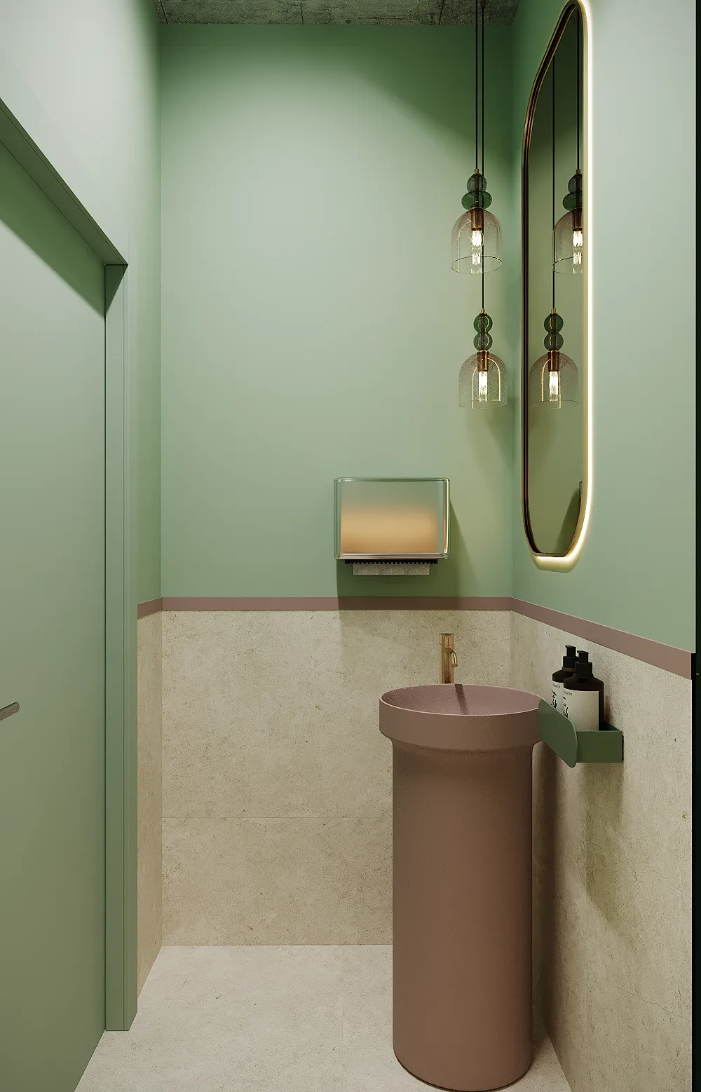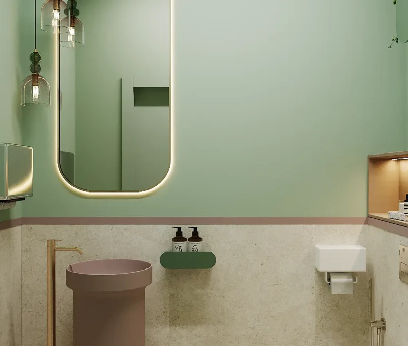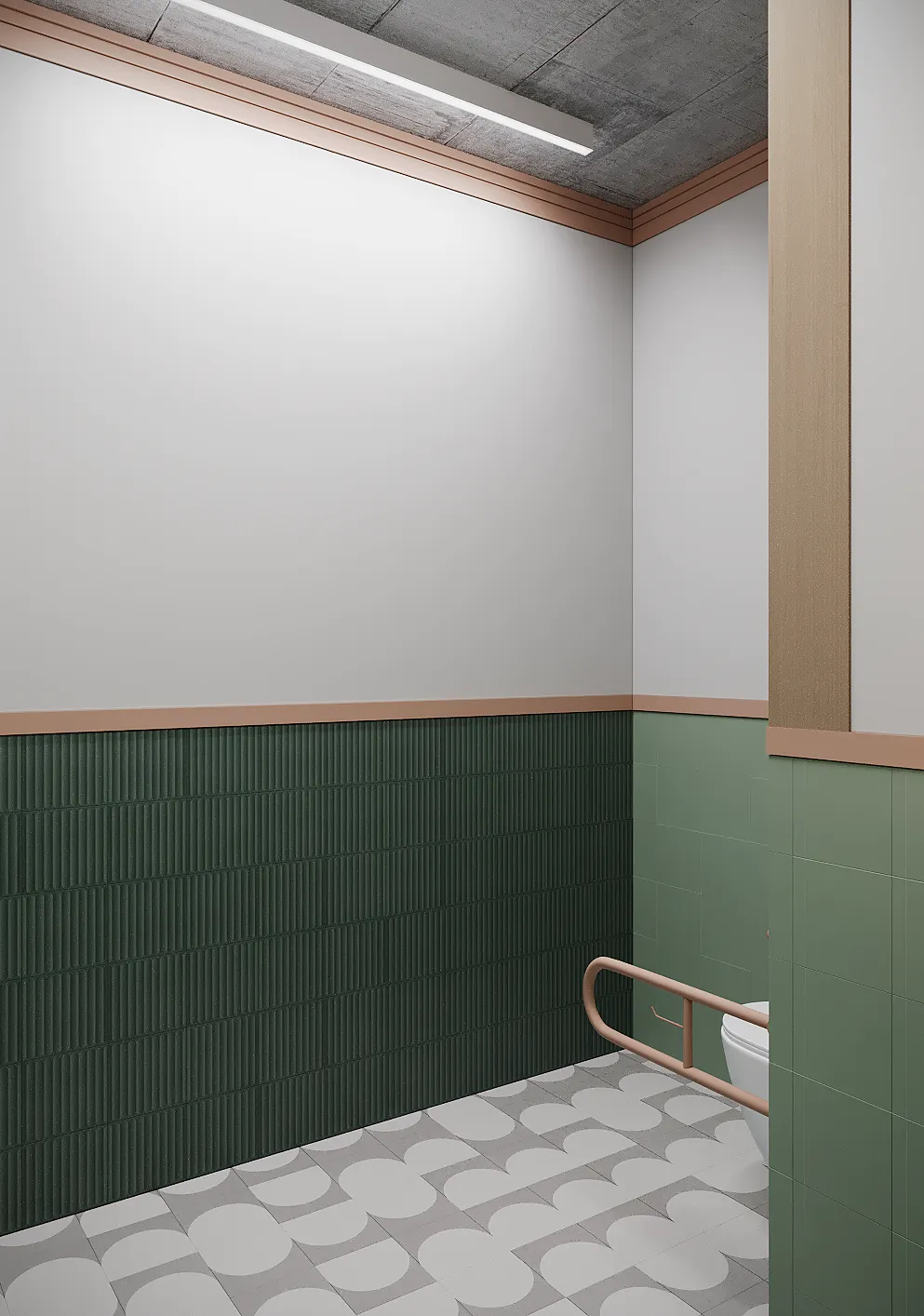 Współpraca obejmowała zaprojektowanie przestrzeni na dwóch kondygnacjach budynku w stanie deweloperskim. Na parterze zaprojektowaliśmy recepcję, poczekalnię i toaletę oraz trzy gabinety. Dwa z nich to gabinety lekarskie i konsultacyjne, między którymi stworzyliśmy pokój relaksu. Umożliwia on odpoczynek pacjentów po zabiegach lub przed nimi, minimalizując stres. W tym pomieszczeniu znajdzie się także urządzenie Foto Finder, które umożliwia bardzo dokładną ocenę pojedynczych znamion oraz śledzenie zmian skórnych na całym ciele. Dzięki specjalnemu urządzeniu w kilka minut powstaje pełna mapa znamion pacjenta.