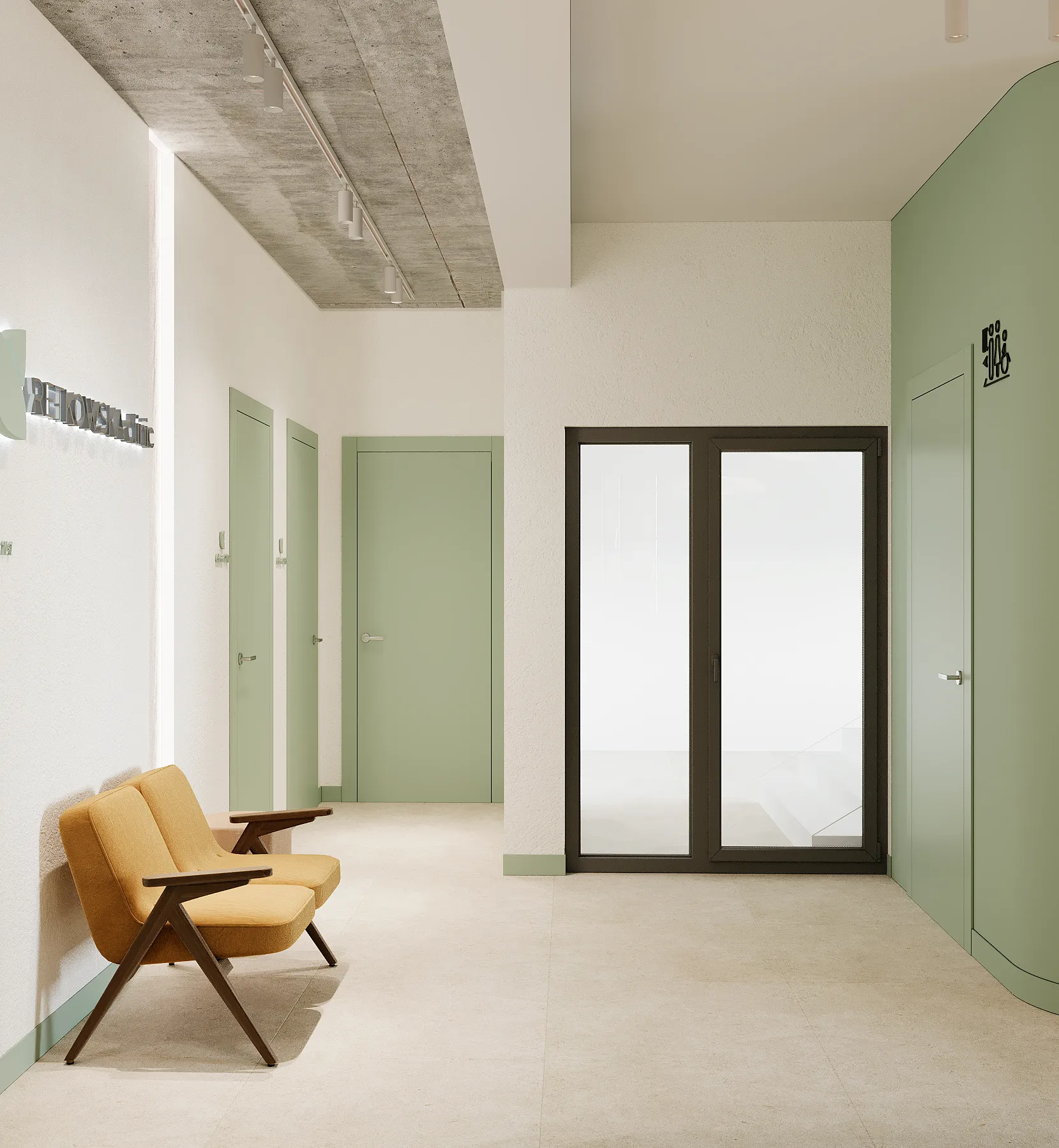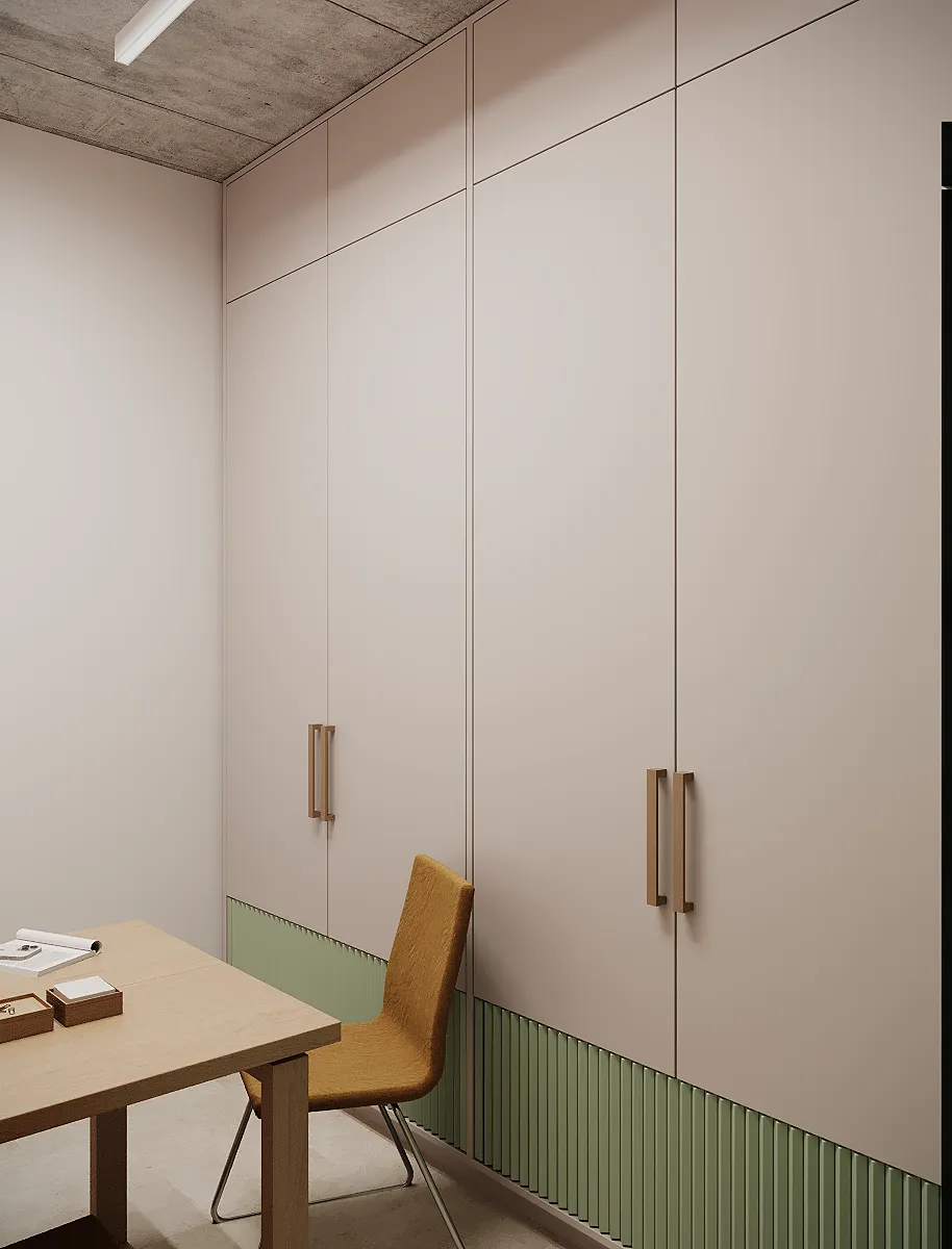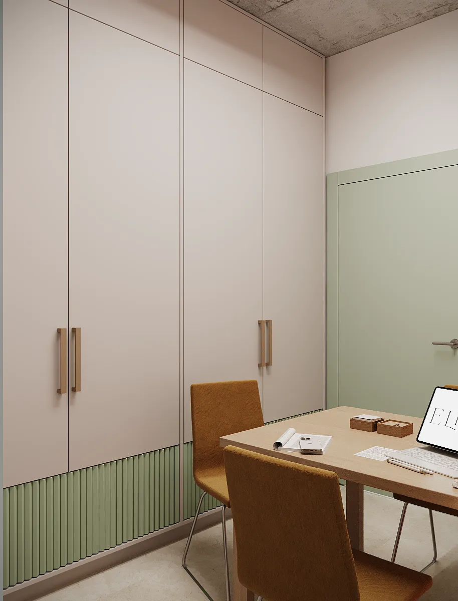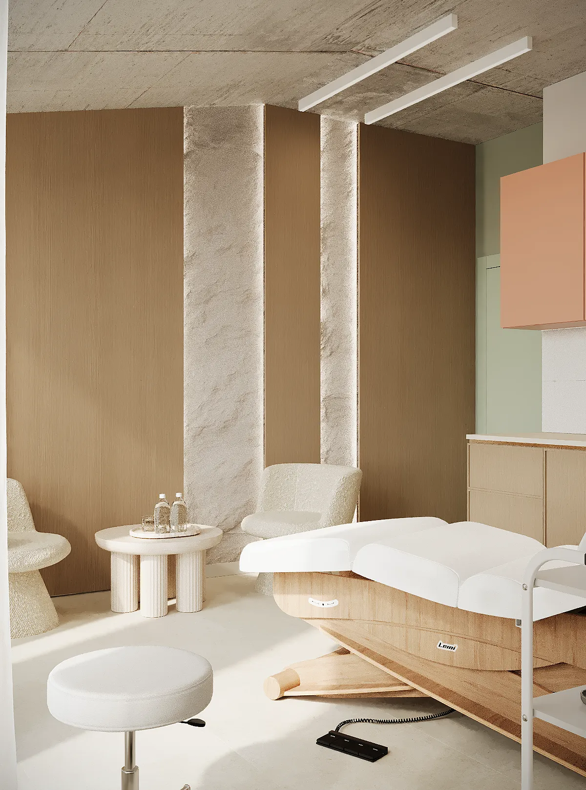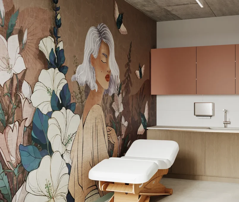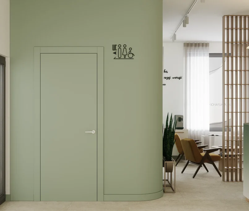 Na drugim piętrze zaprojektowaliśmy strefę kosmetyczną, w której znalazły się trzy gabinety przystosowane do zabiegów kosmetologicznych. Stworzyliśmy też osobny gabinet do masażu.