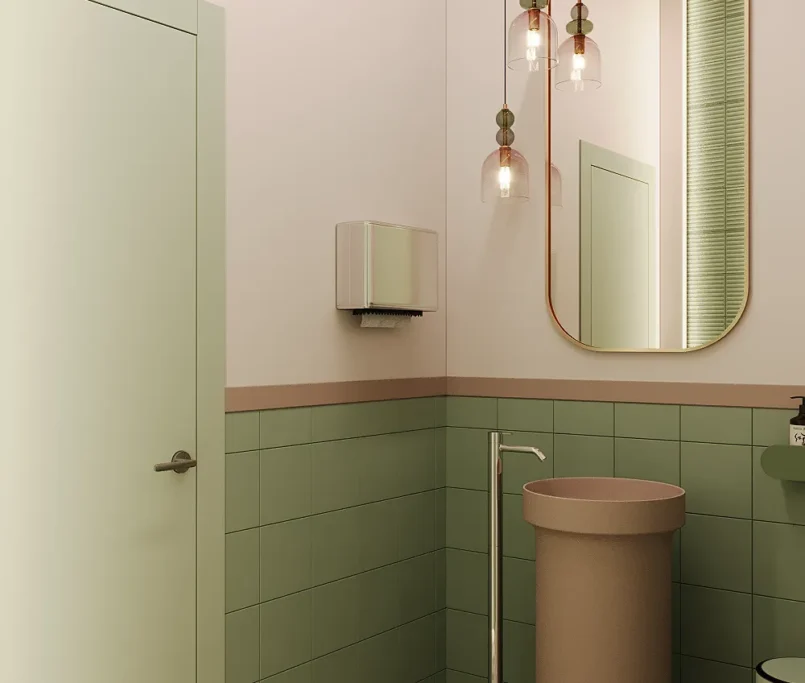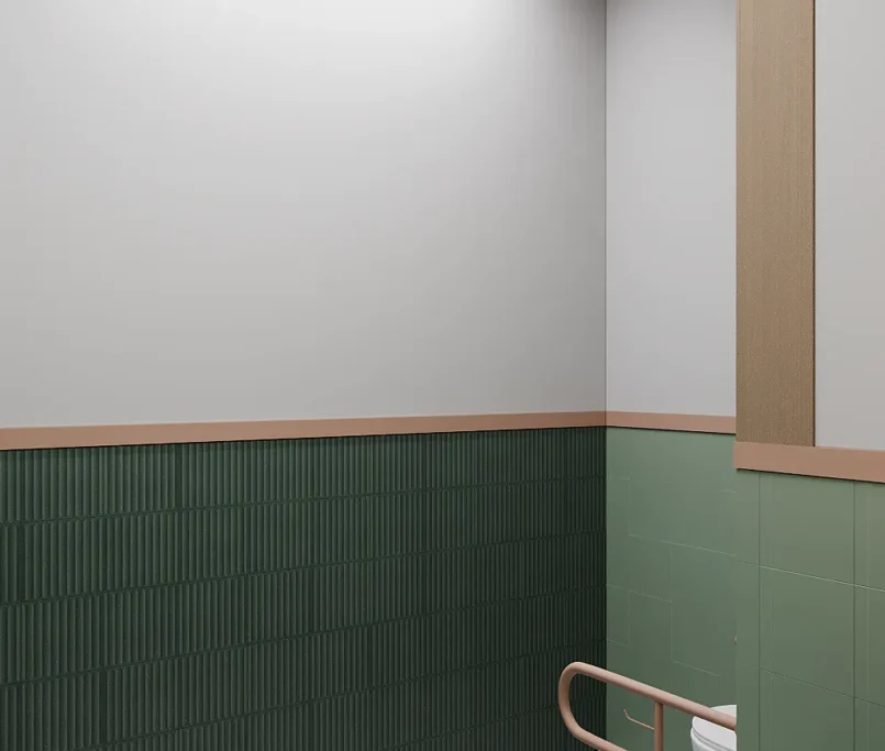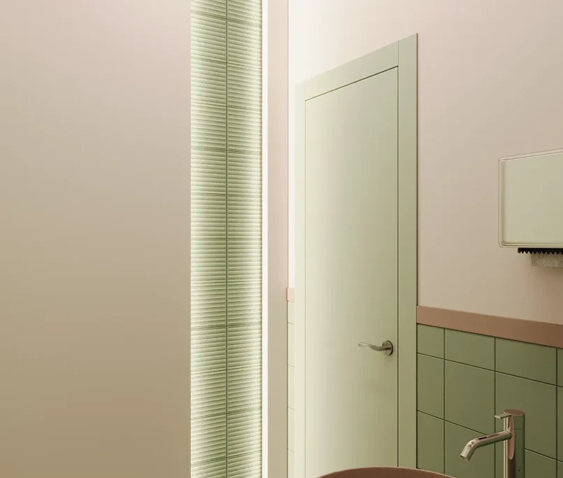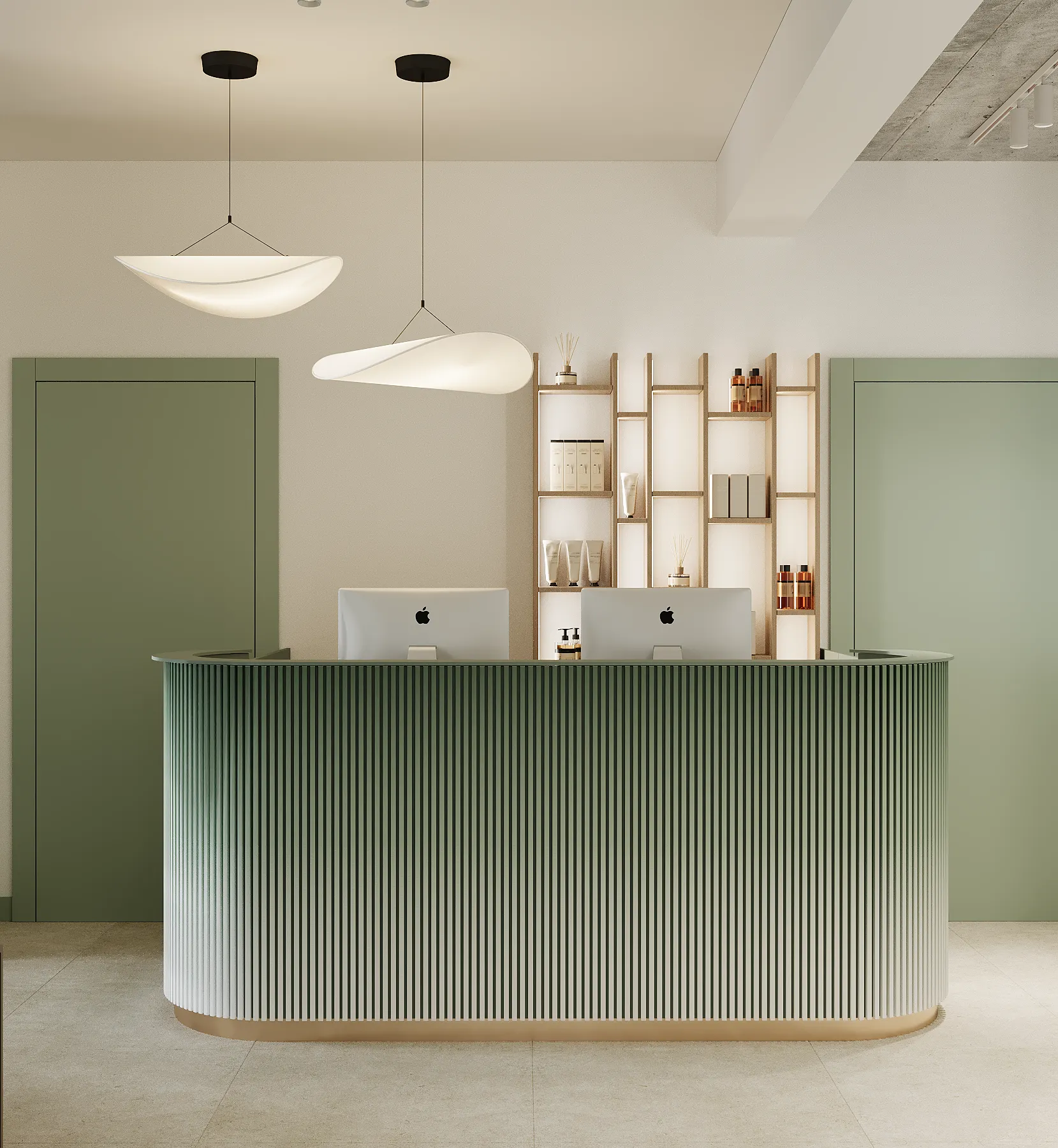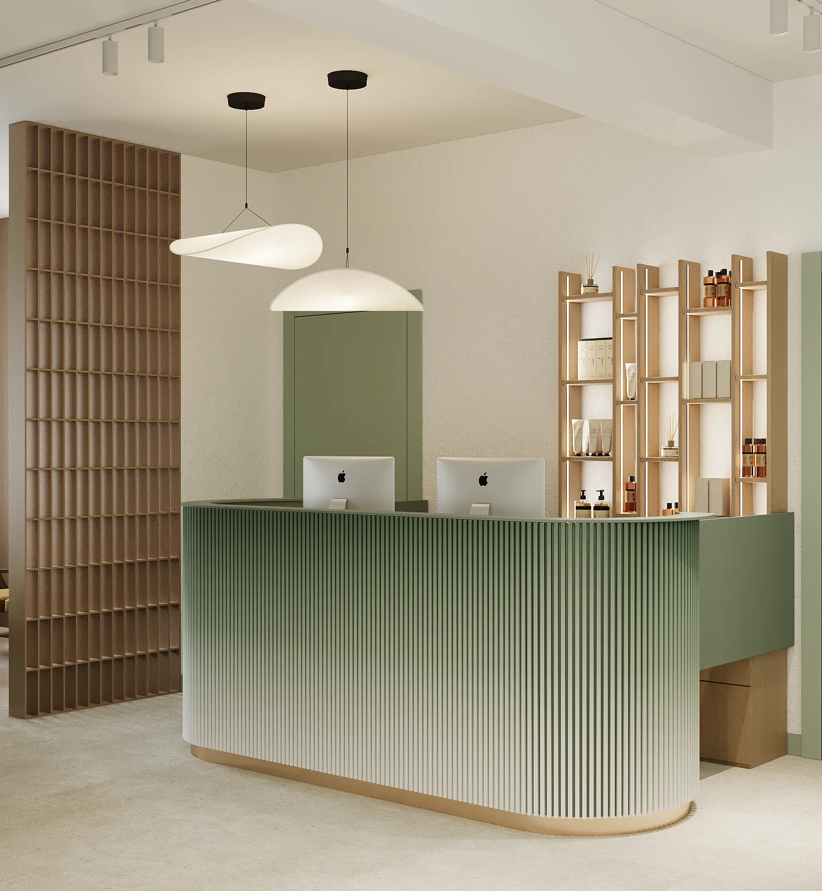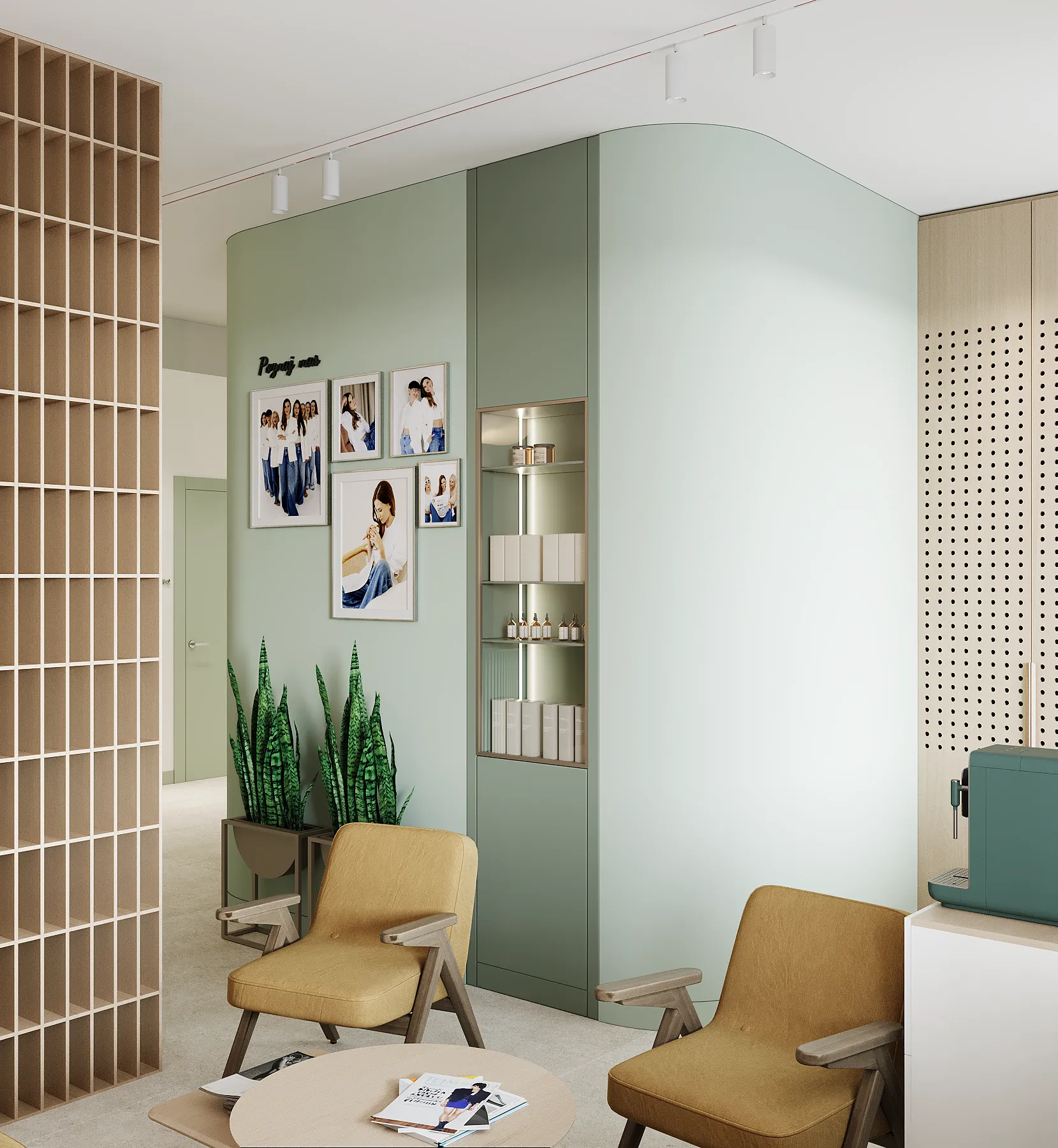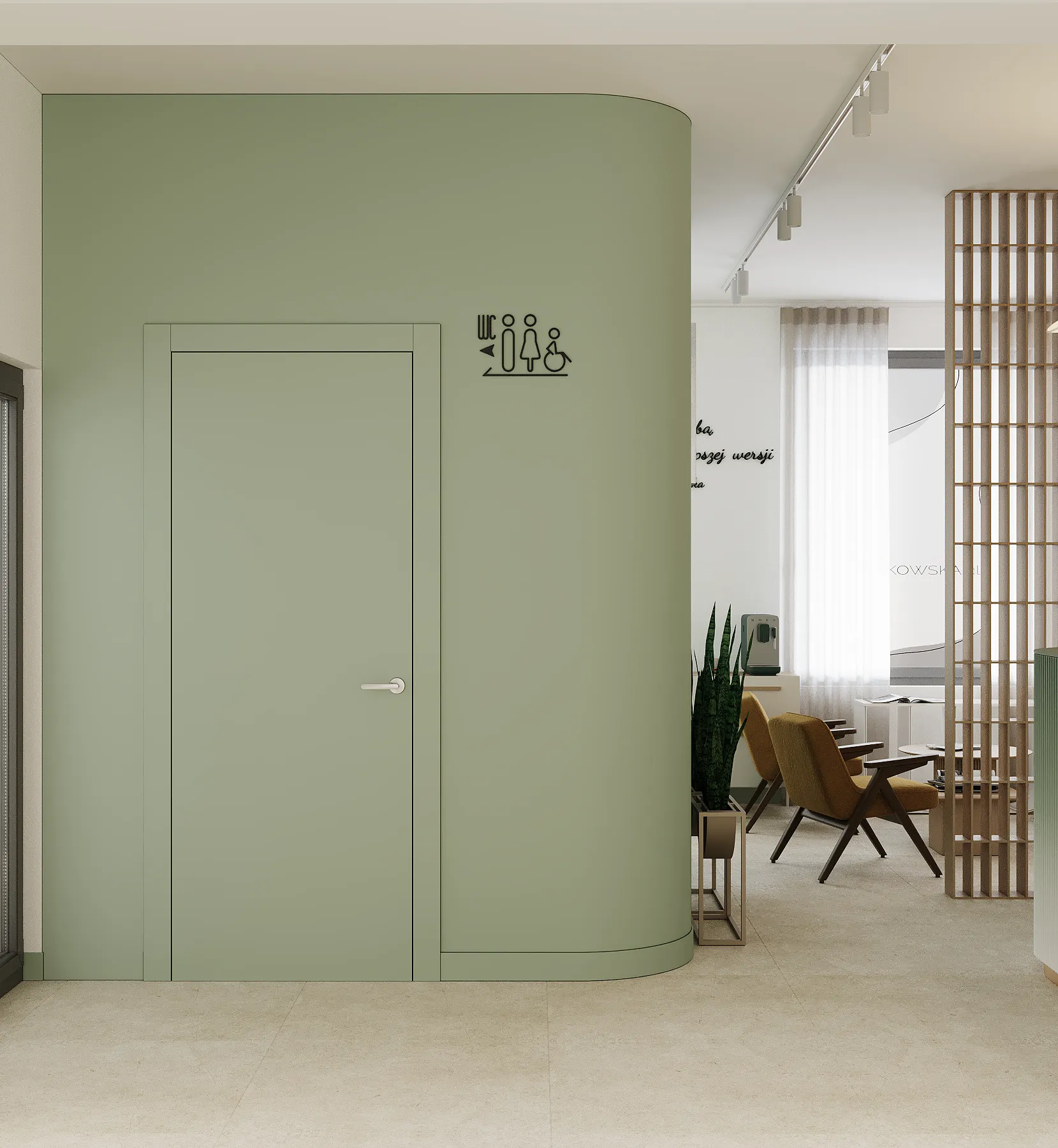 Na drugim piętrze zaprojektowaliśmy strefę kosmetyczną, w której znalazły się trzy gabinety przystosowane do zabiegów kosmetologicznych. Stworzyliśmy też osobny gabinet do masażu.