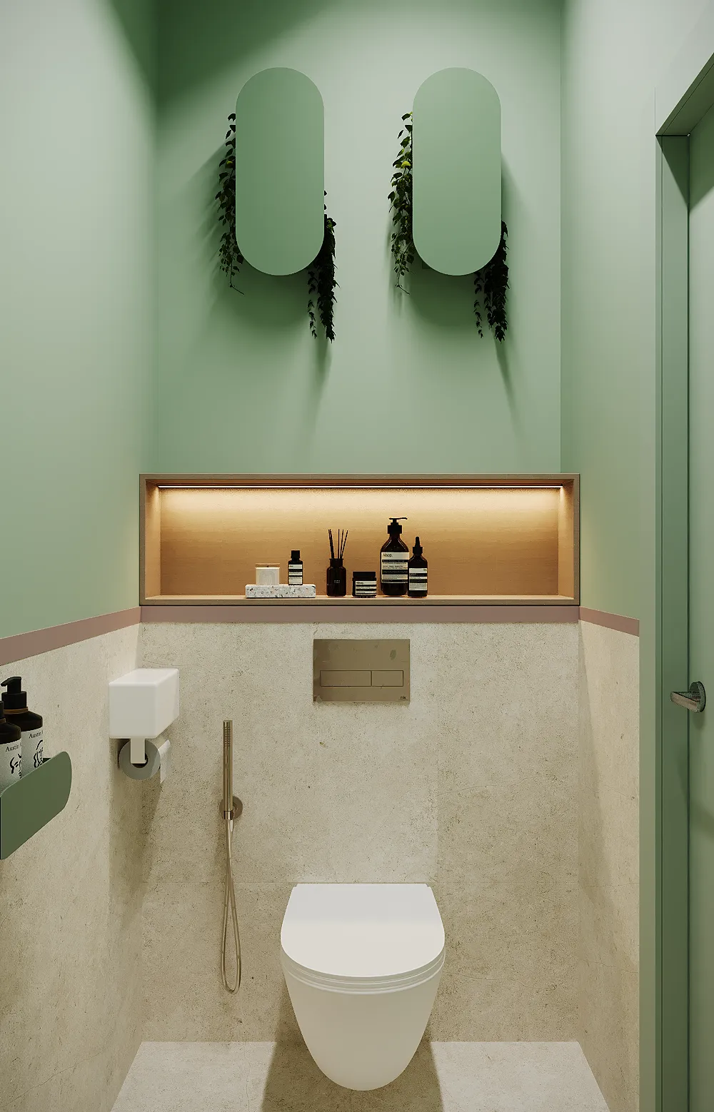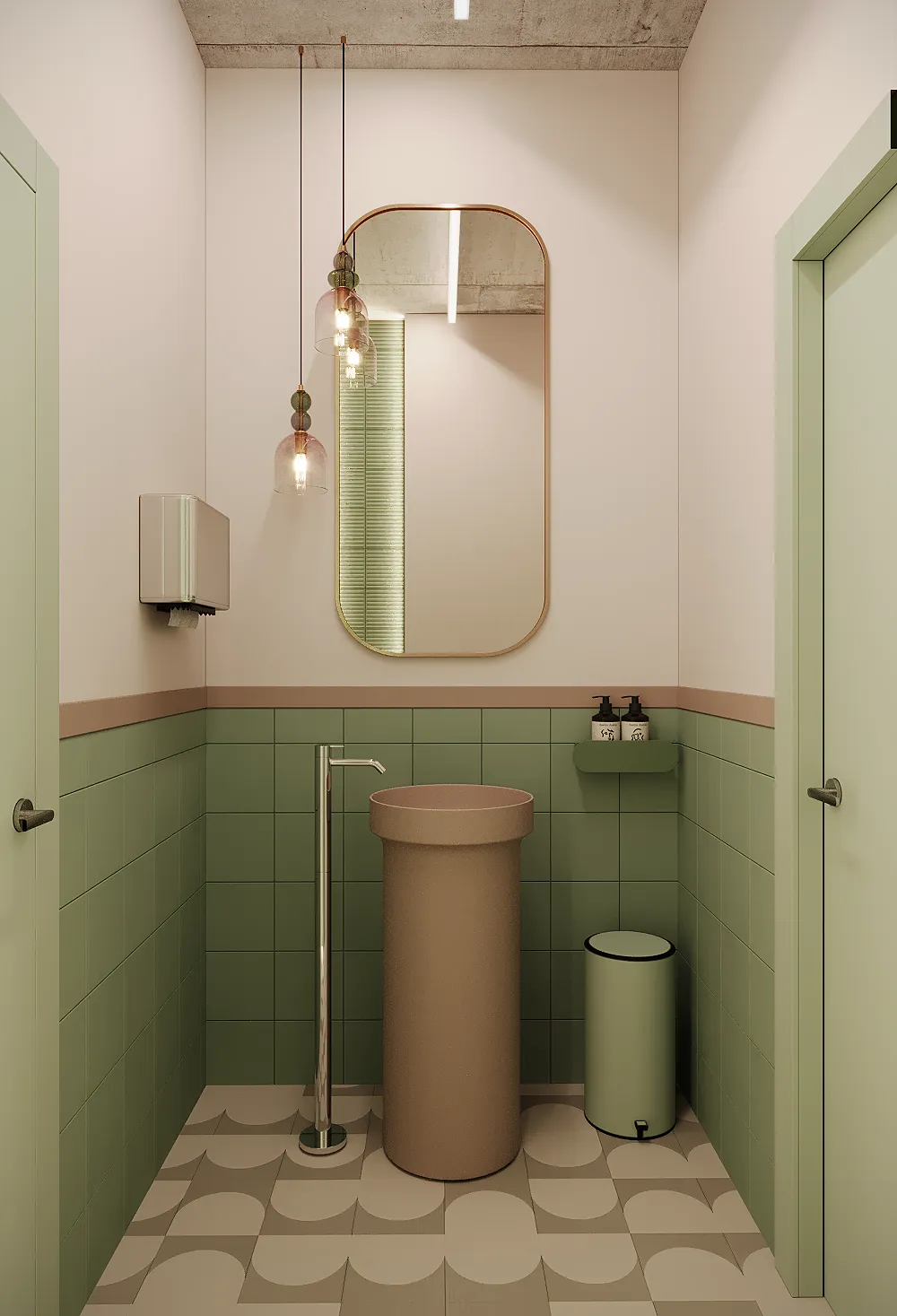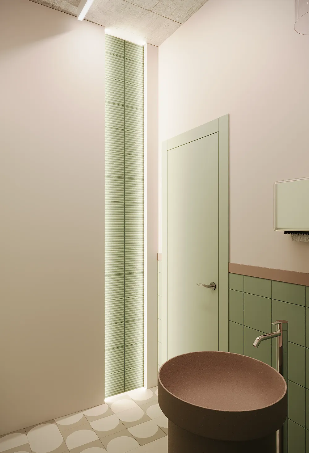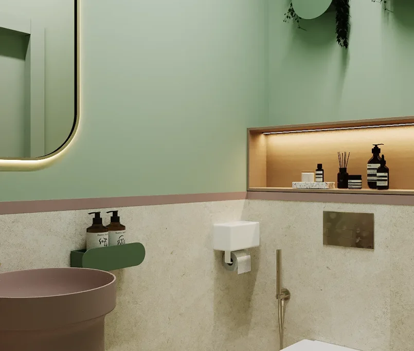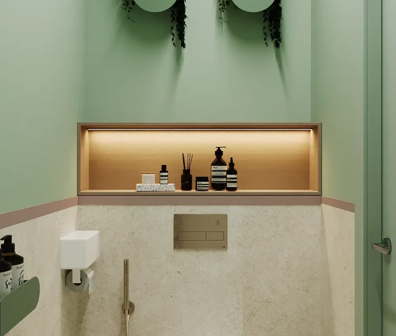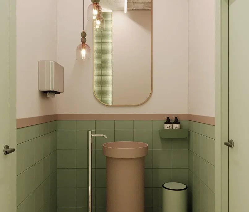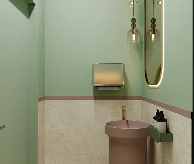 Na drugim piętrze zaprojektowaliśmy strefę kosmetyczną, w której znalazły się trzy gabinety przystosowane do zabiegów kosmetologicznych. Stworzyliśmy też osobny gabinet do masażu.