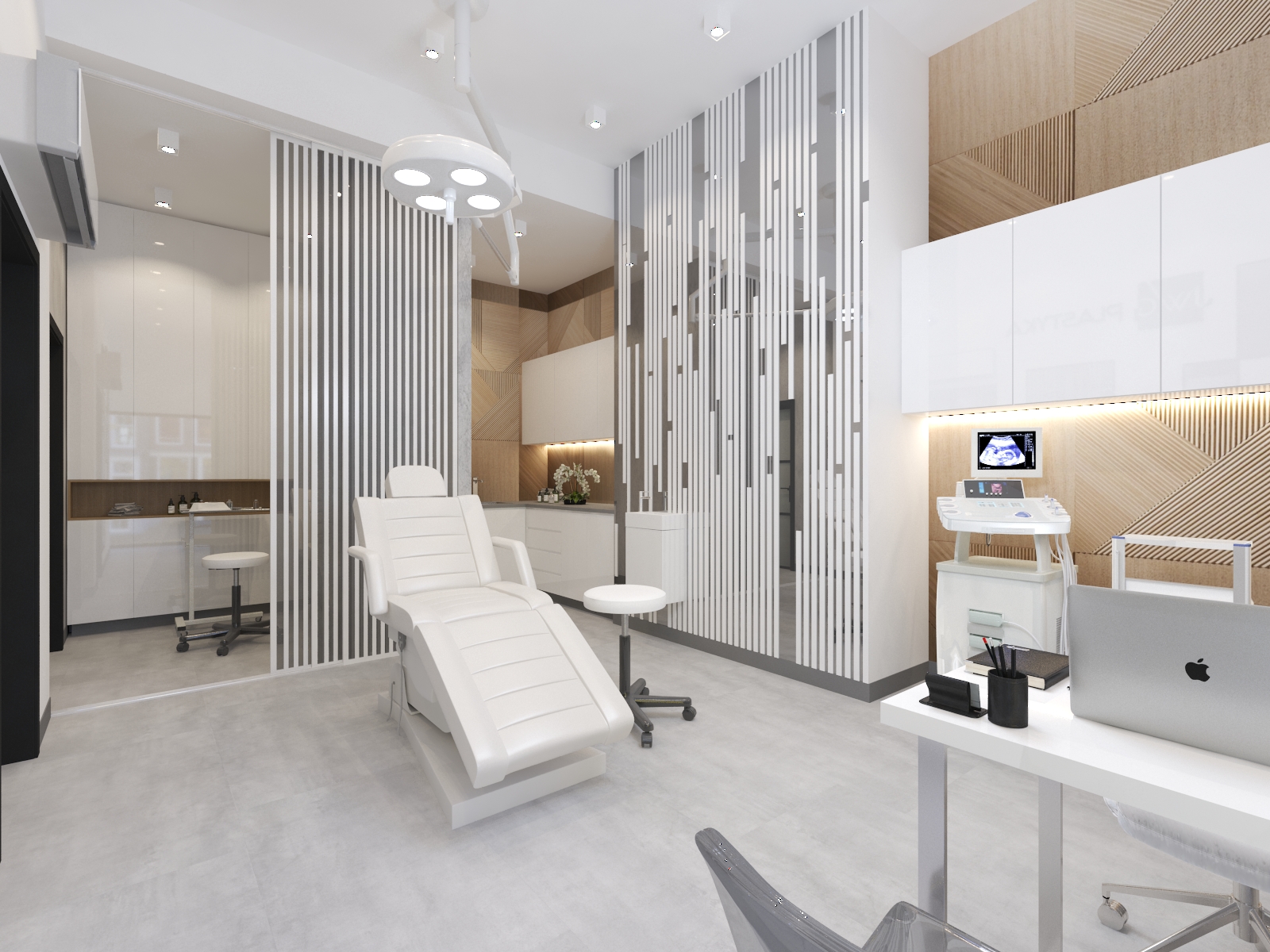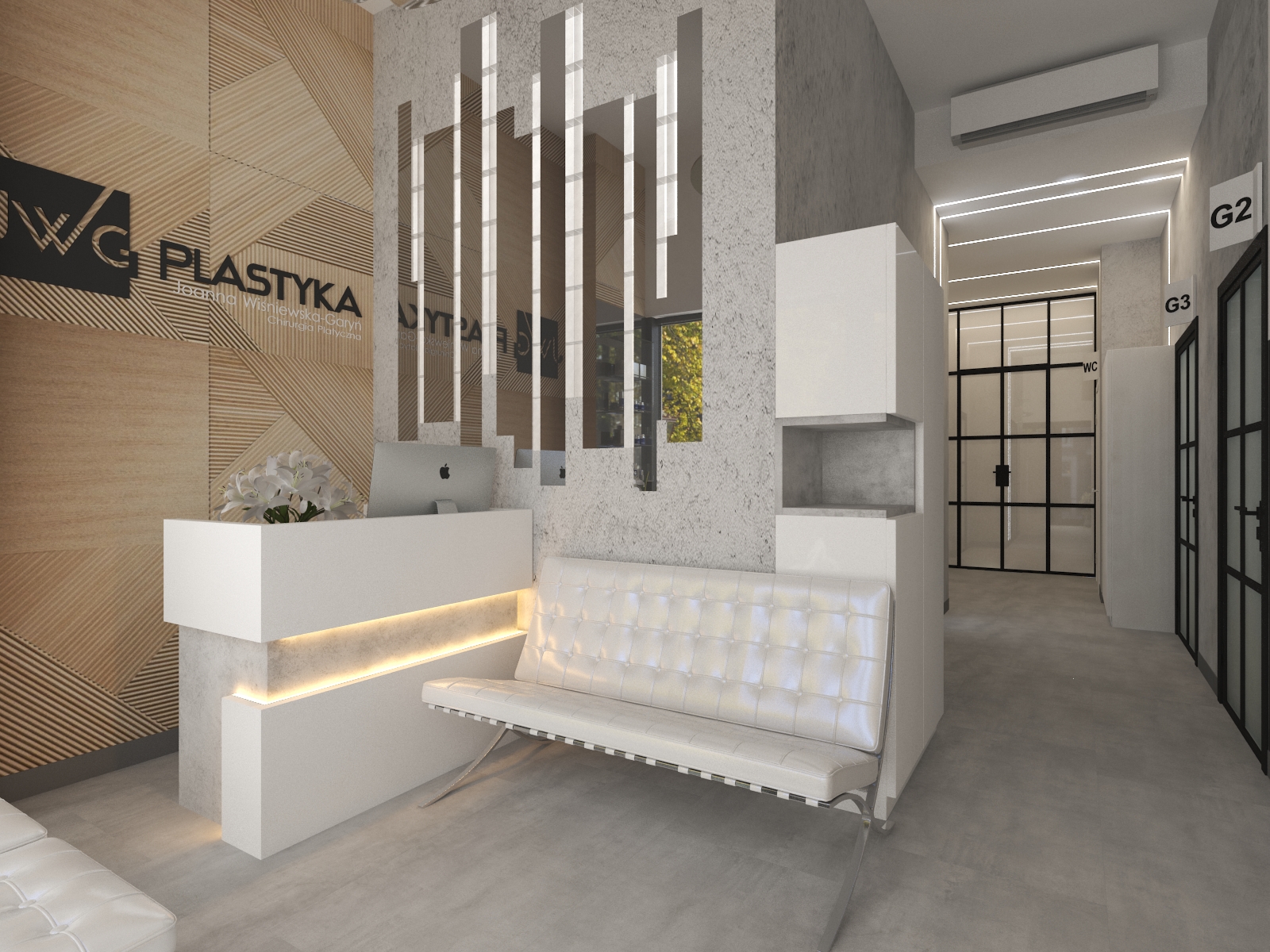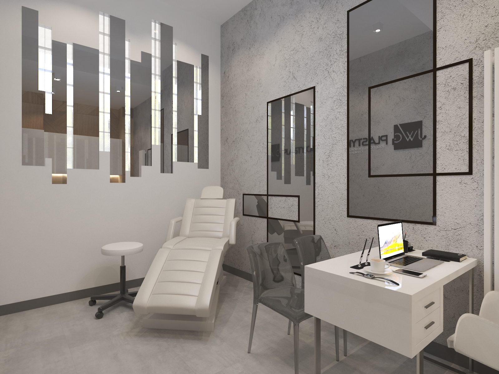 Współpraca z JWG Plastyka obejmowała zaprojektowanie wnętrz Kliniki Medycyny Estetycznej. Zaaranżowaliśmy całe wnętrze, projektując układ pomieszczeń, instalacje elektryczne, hydrauliczne, kanalizację i wentylację. Projekt realizowaliśmy w lokalu usługowym, który nie był przystosowany do prowadzenia lokalu medycznego. Dzięki indywidualnemu projektowi wszystkich instalacji deweloper mógł je wykonać na etapie budowy.