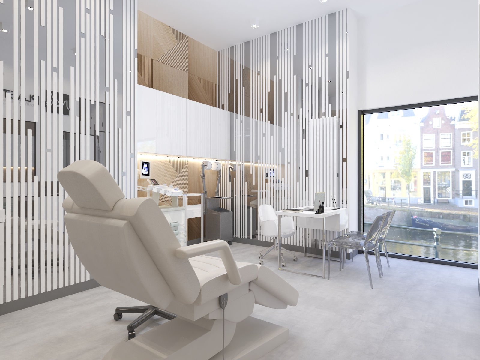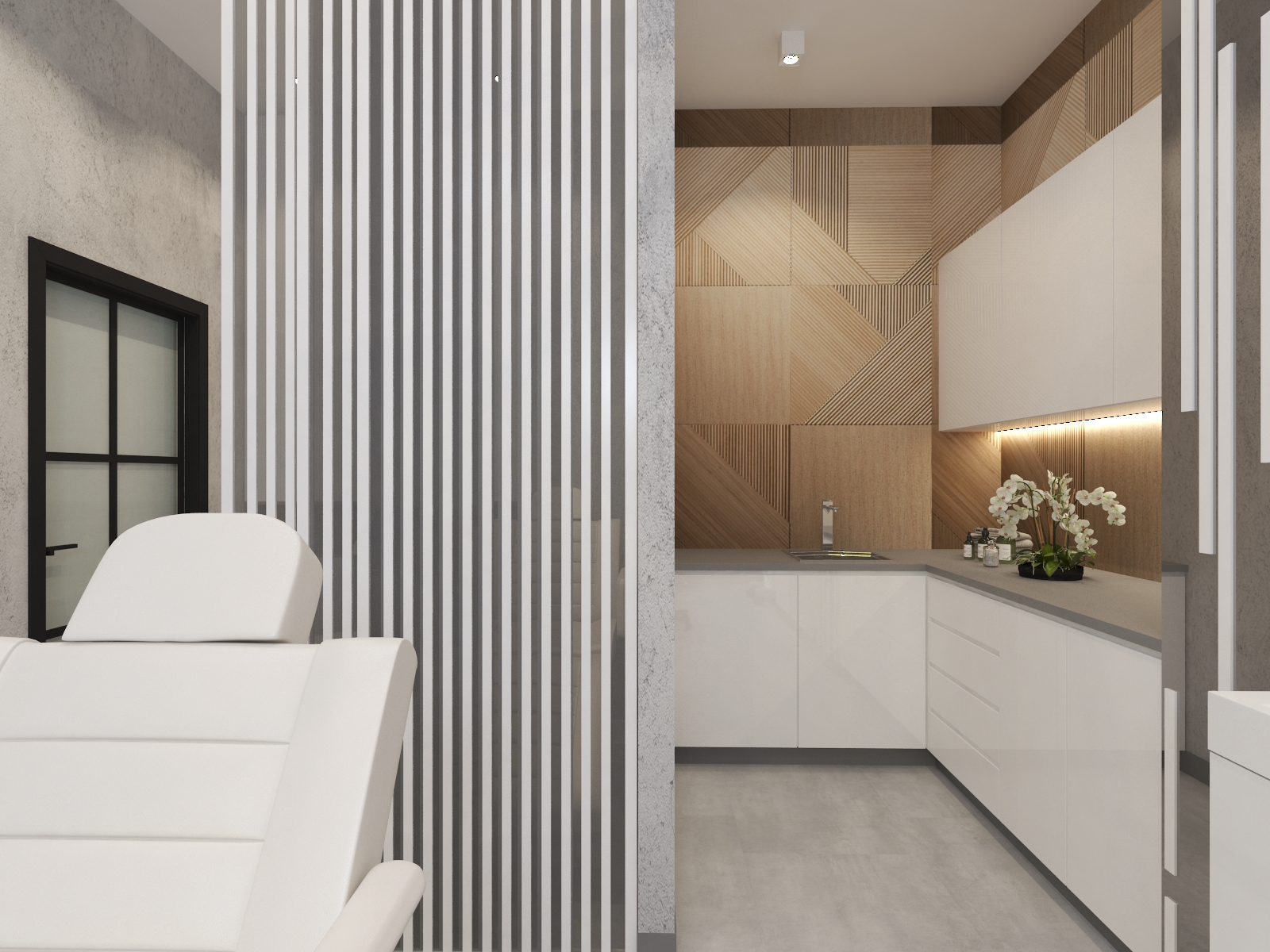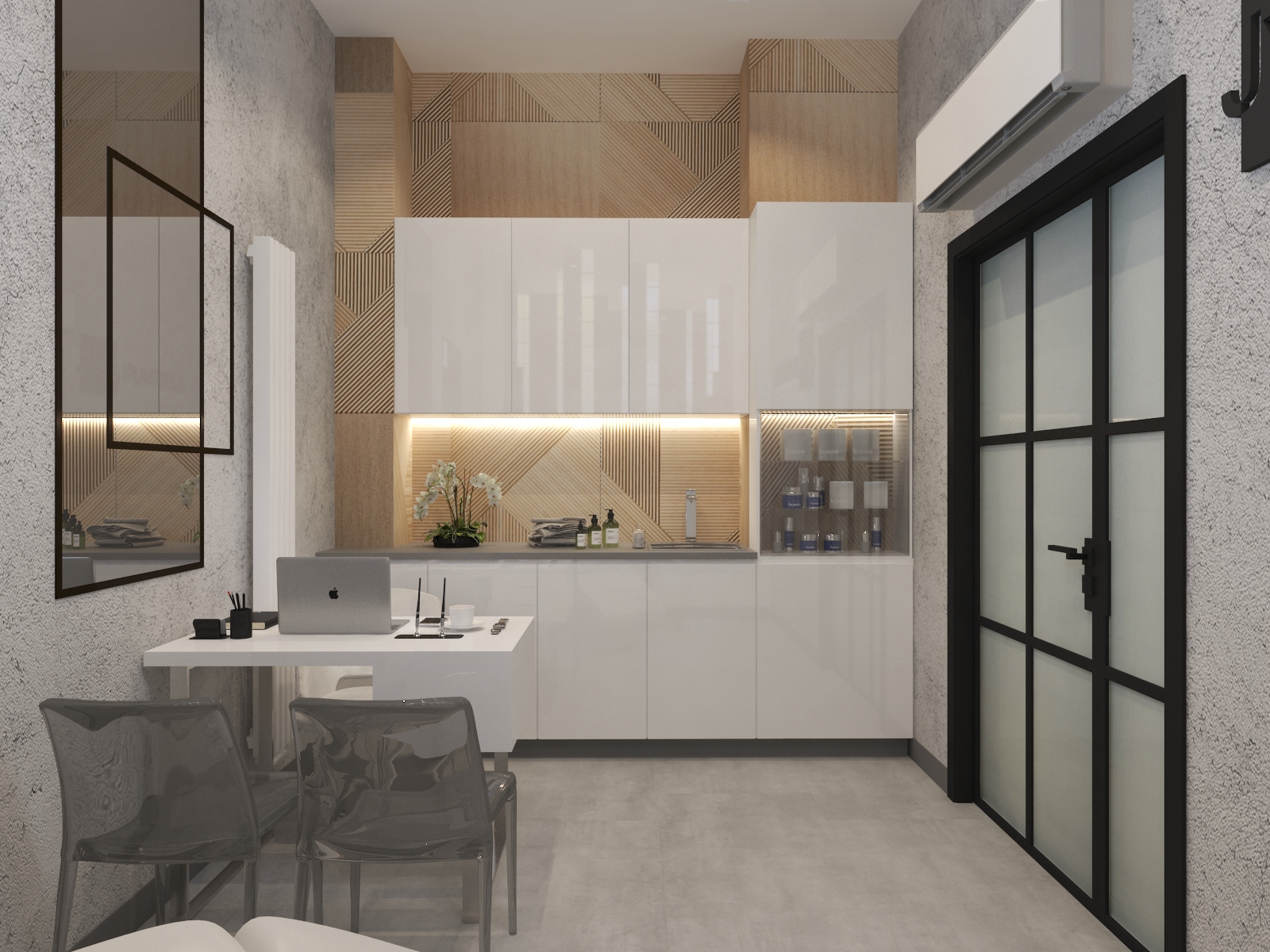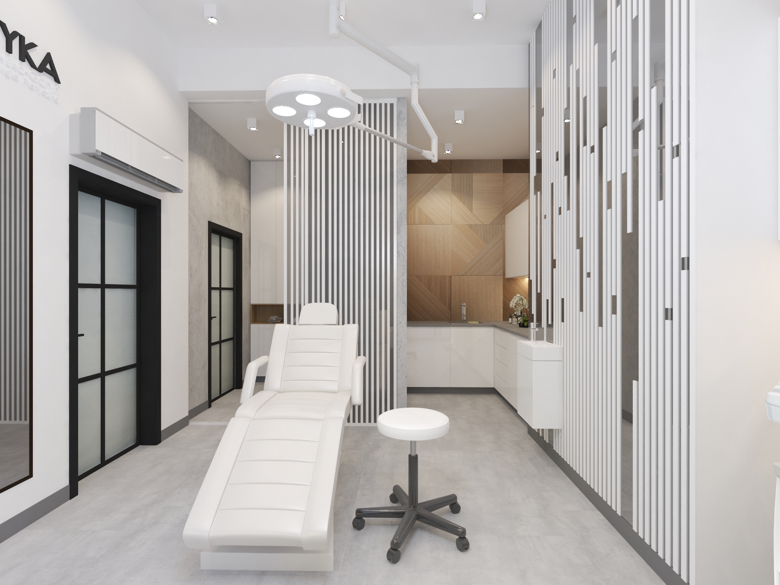 Współpraca z JWG Plastyka obejmowała zaprojektowanie wnętrz Kliniki Medycyny Estetycznej. Zaaranżowaliśmy całe wnętrze, projektując układ pomieszczeń, instalacje elektryczne, hydrauliczne, kanalizację i wentylację. Projekt realizowaliśmy w lokalu usługowym, który nie był przystosowany do prowadzenia lokalu medycznego. Dzięki indywidualnemu projektowi wszystkich instalacji deweloper mógł je wykonać na etapie budowy.