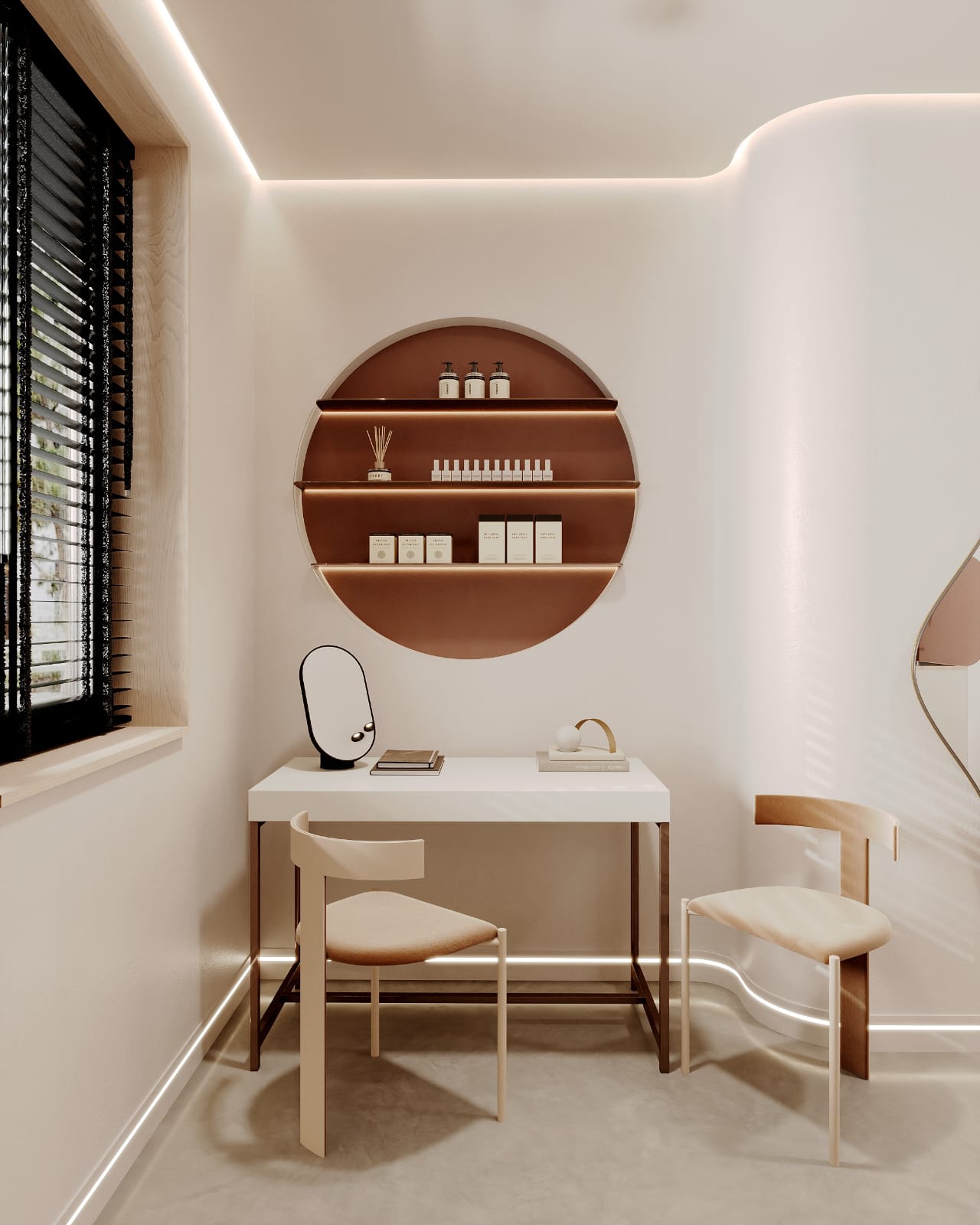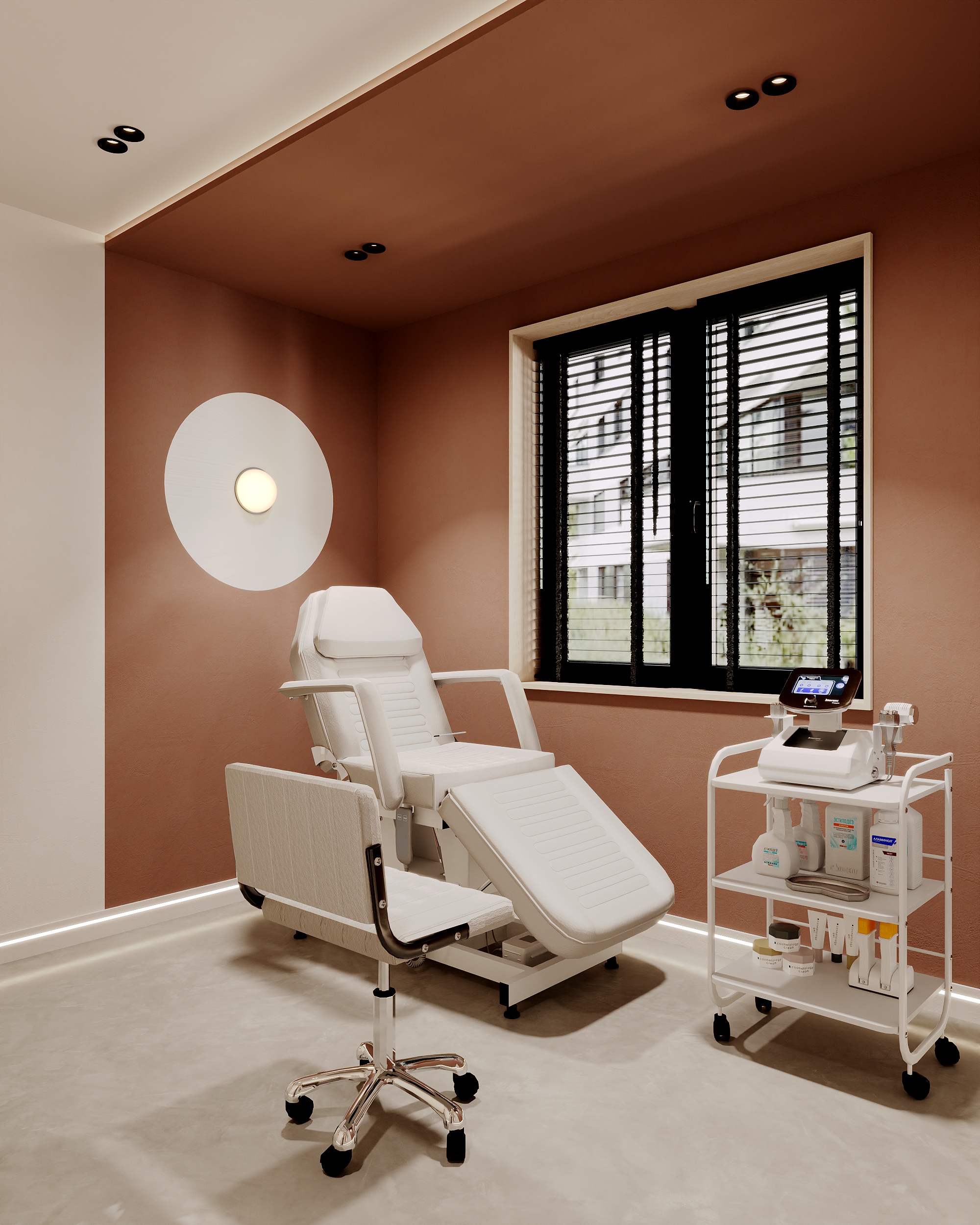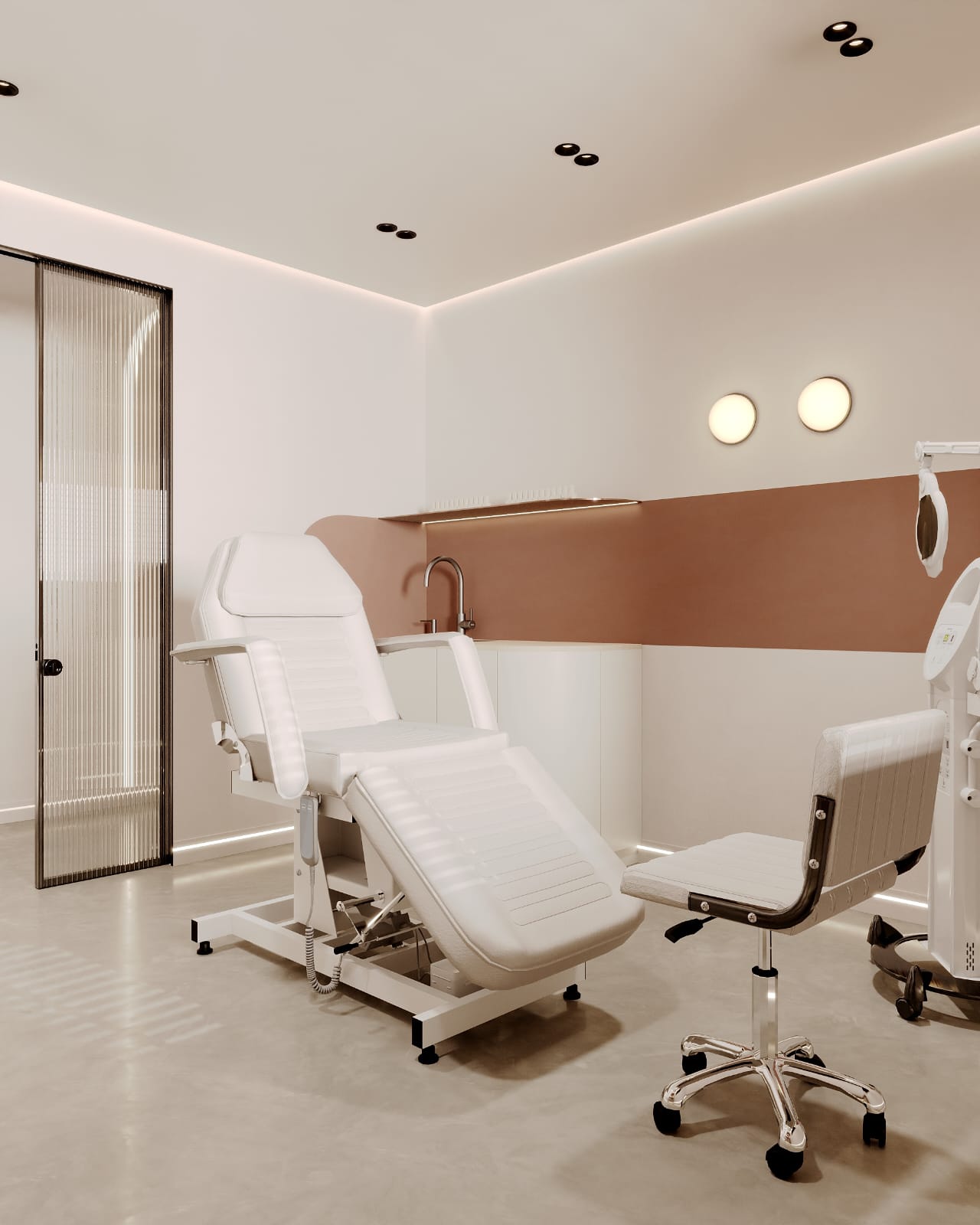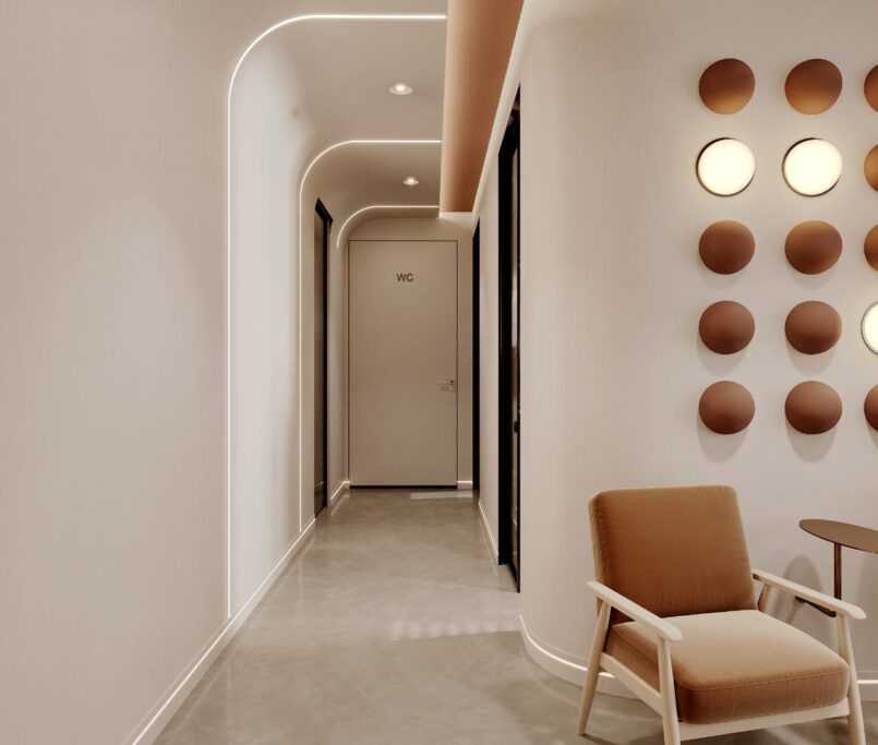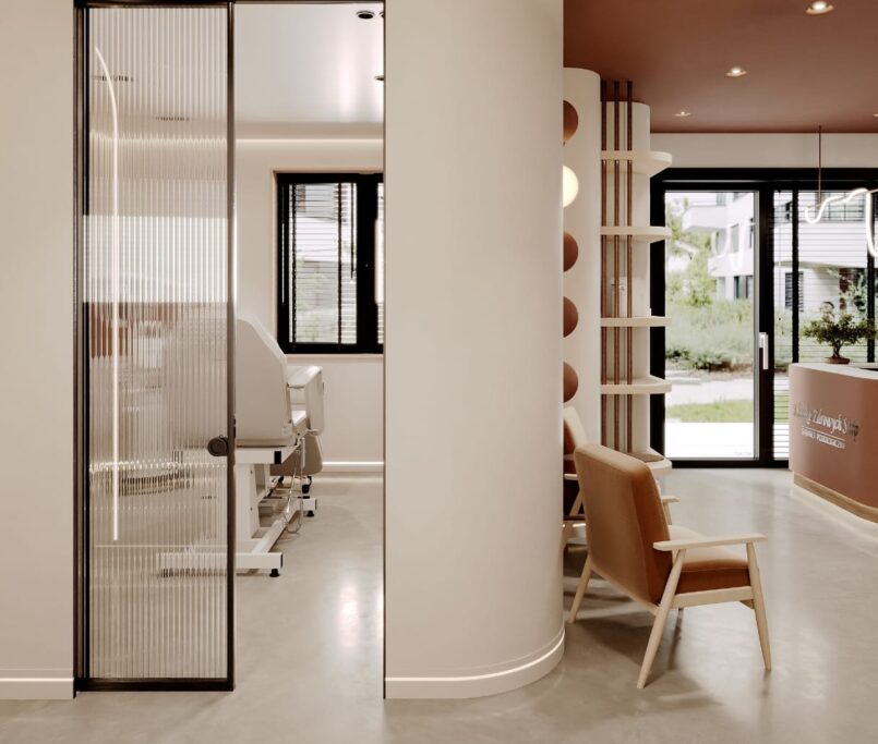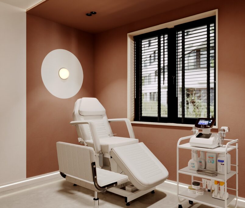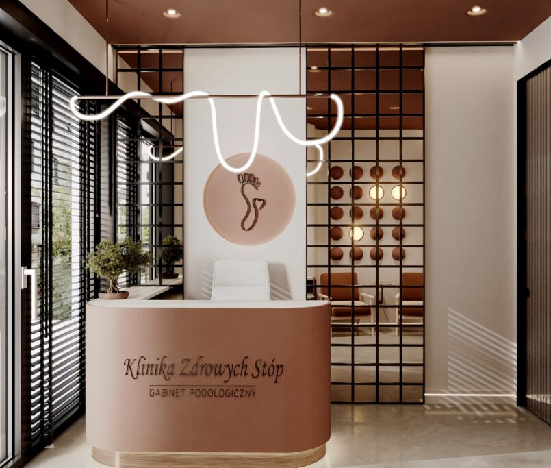 Współpraca obejmowała zaprojektowanie całego układu Kliniki, poszczególnych pomieszczeń oraz wszystkich instalacji. Dzięki temu, że Klient zgłosił się do nas na etapie, gdy deweloper jeszcze nie rozpoczął budowy, mogliśmy stworzyć indywidualny projekt – w 100% dopasowany do potrzeb działalności Kliniki Podologicznej.