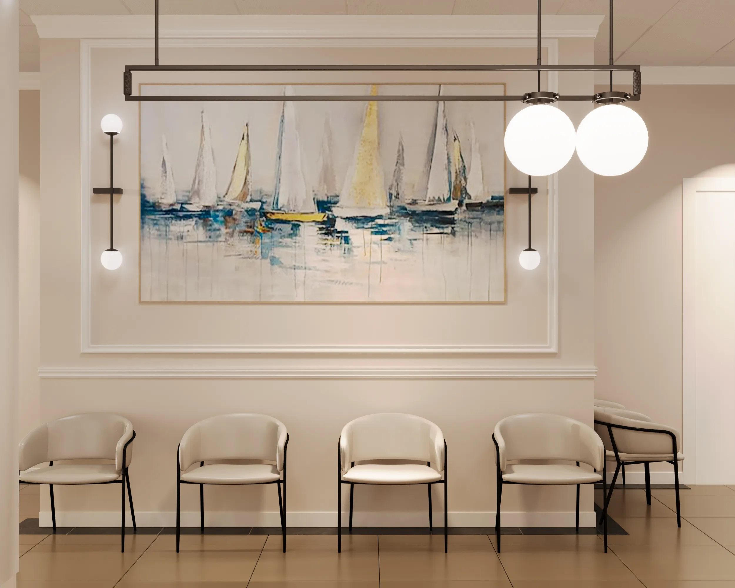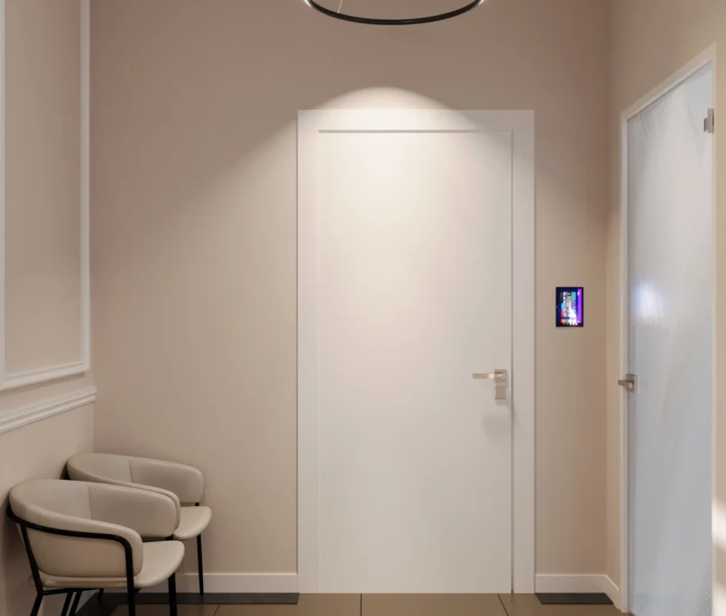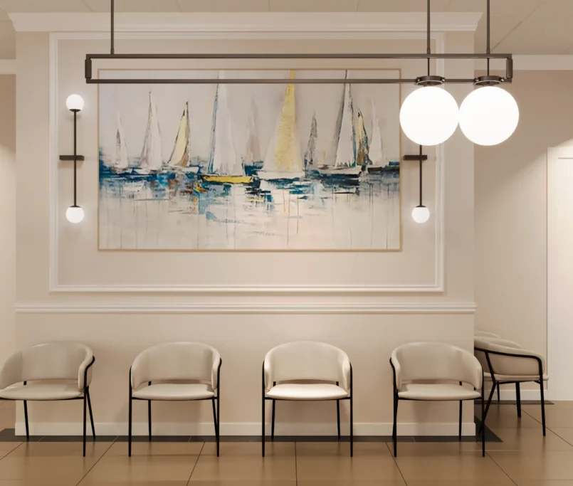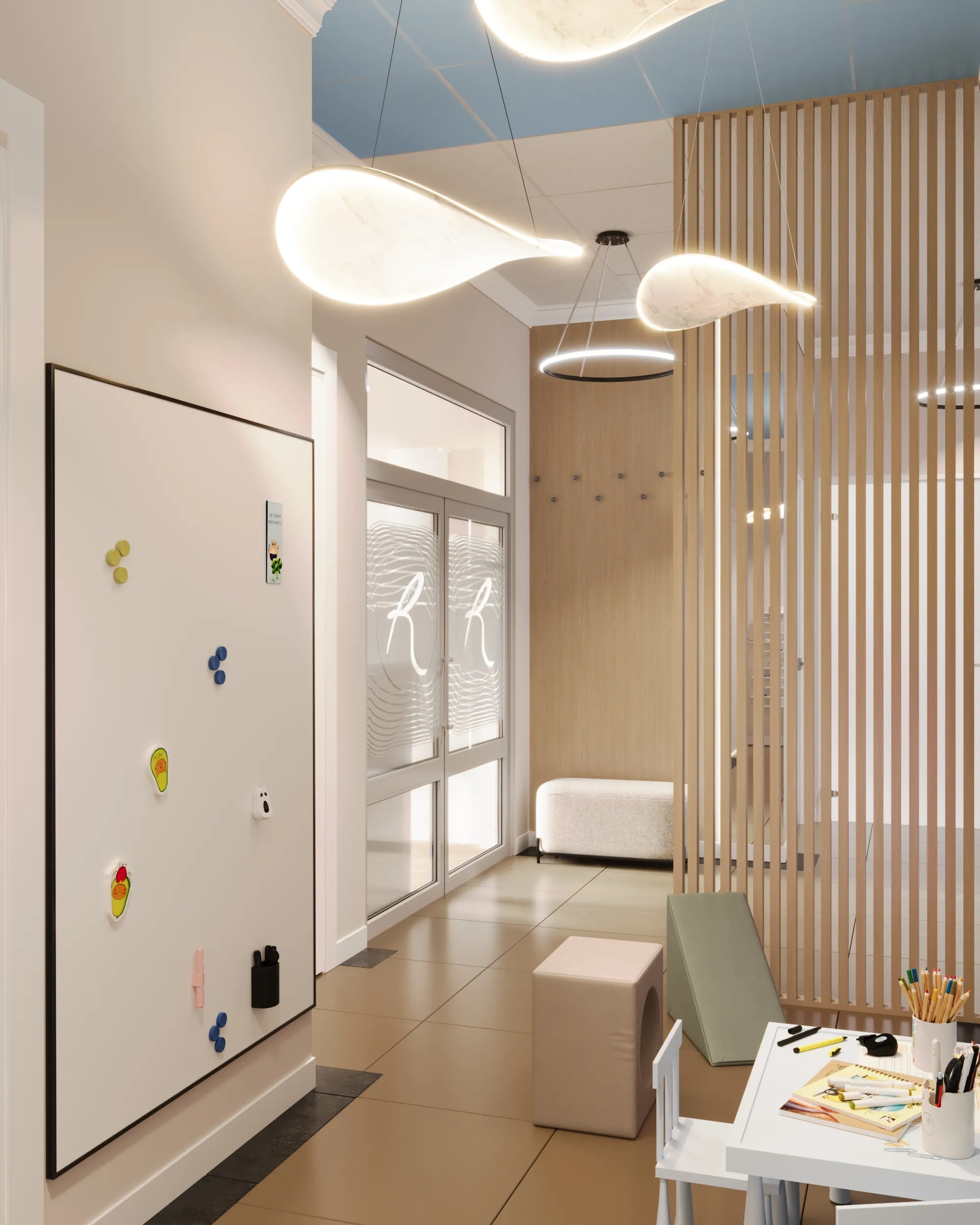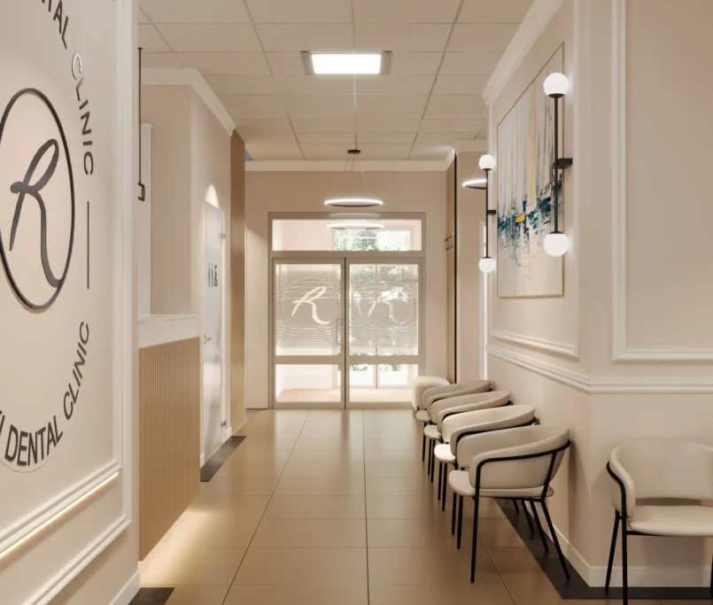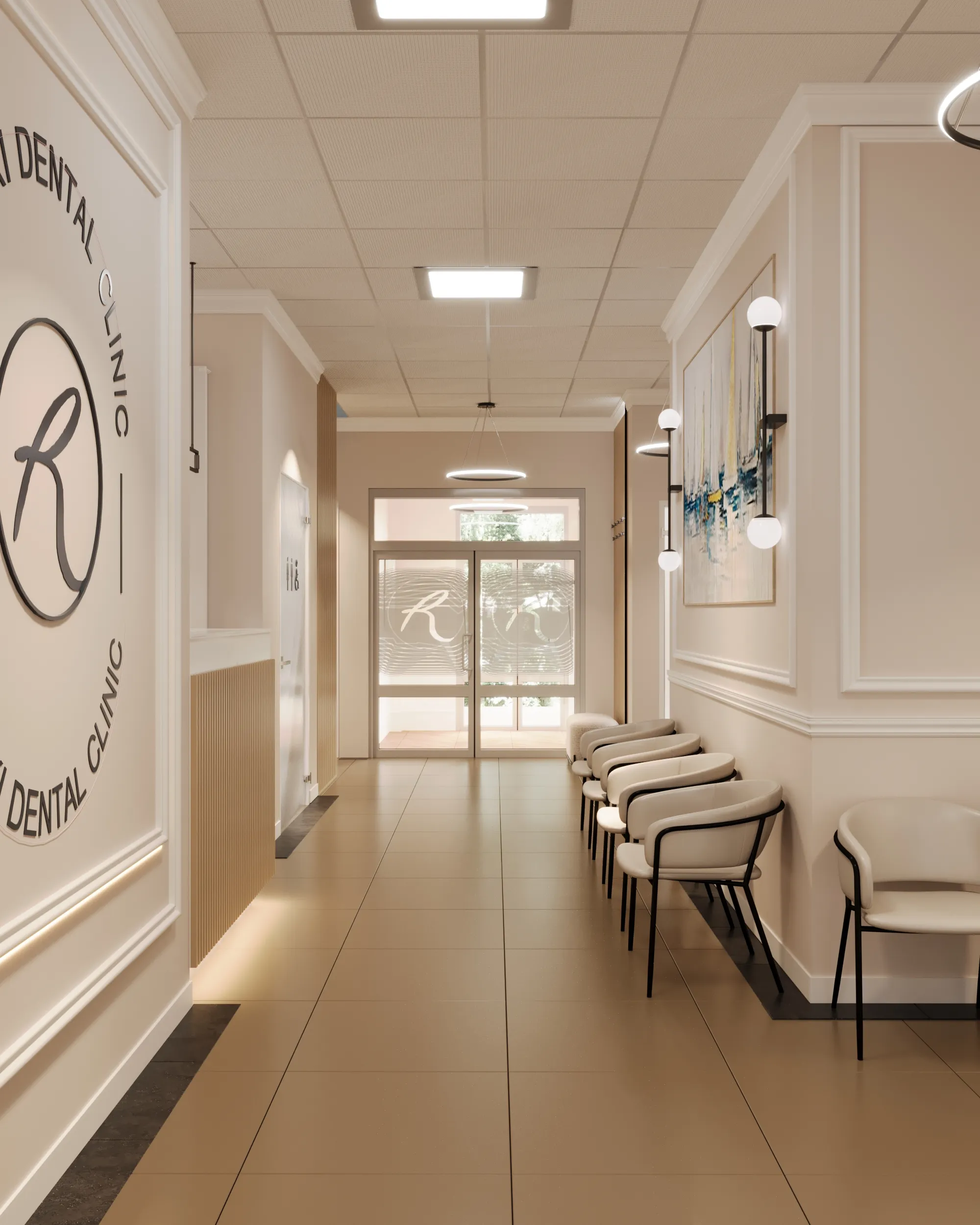 Projekt obejmował zaprojektowanie kliniki stomatologicznej w lokalu, który kiedyś był kliniką ginekologiczną. Klientowi zależało na tym, aby jak najwięcej elementów z istniejącej infrastruktury zostało wykorzystane i przystosowane do działalności gabinetów stomatologicznych. W głównym gabinecie stomatologicznym zaproponowaliśmy oddzielną umywalkę dla asysty oraz oddzielną umywalkę dla lekarza, dzięki czemu praca jest wykonywana płynnie i obydwie strony nie wchodzą sobie w drogę.