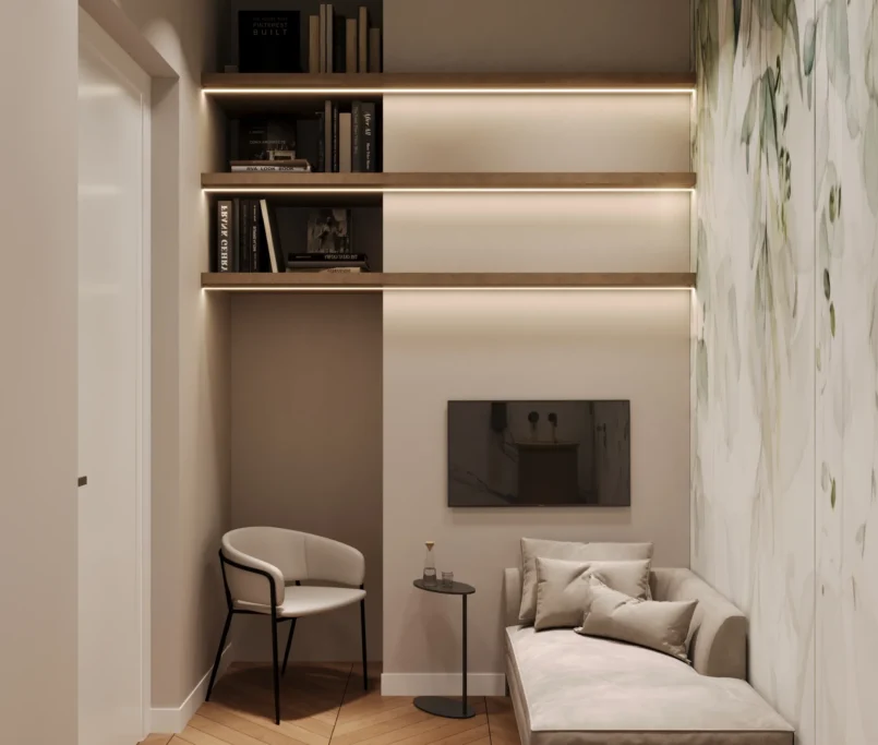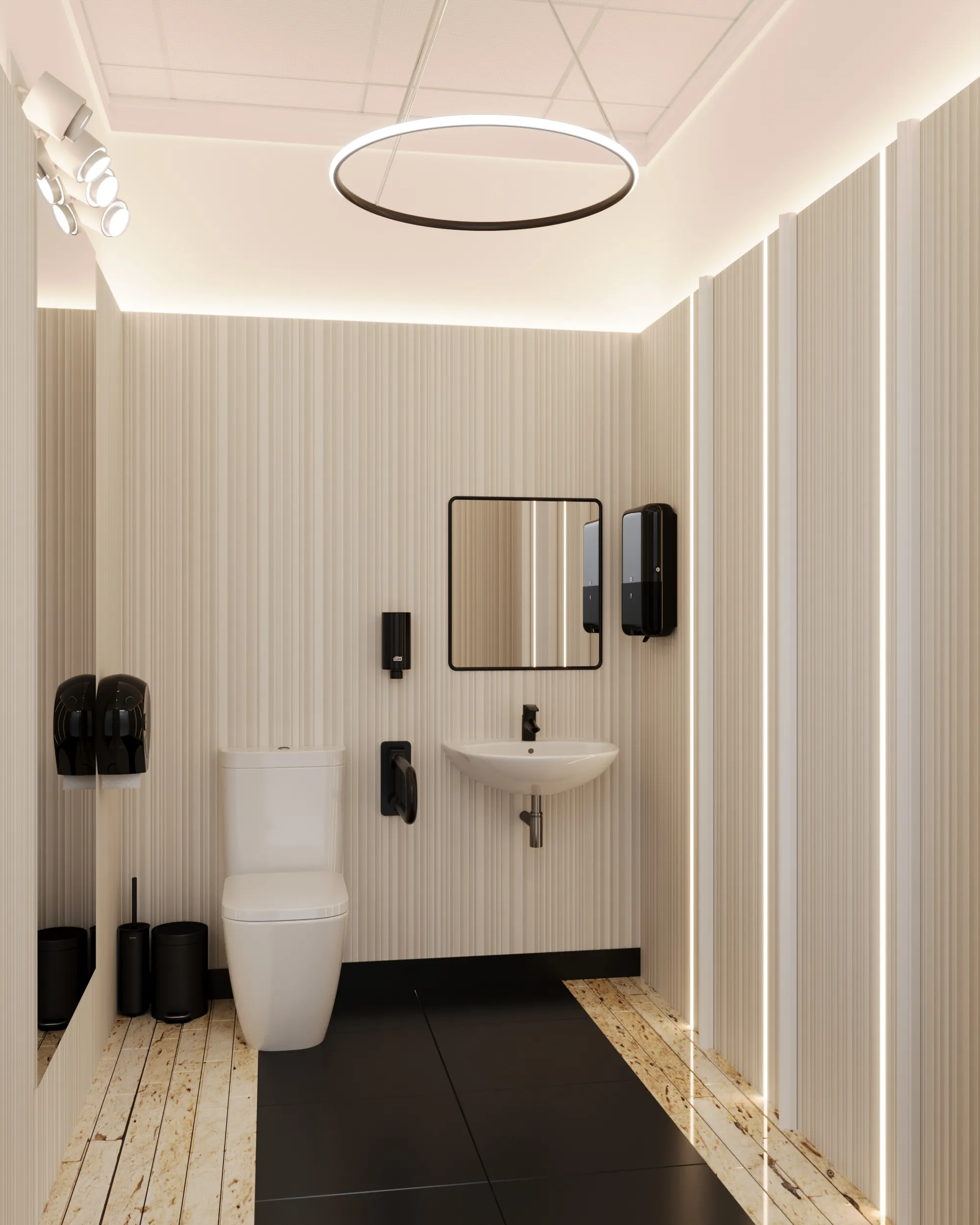 W tym projekcie dokonaliśmy rearanżacji istniejących powierzchni bez ich zmian w powierzchni i układzie. Wykorzystaliśmy obecną recepcję oraz łazienkę zmieniając jej wizualny wygląd na bardziej nowoczesny i atrakcyjny.